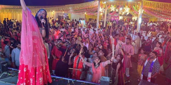 लखनऊ (टेलीस्कोप टुडे संवाददाता)। मारवाड़ी युवा मंच की स्थानीय इकाई द्वारा बुधवार देर शाम बृज की रसोई रिसॉर्ट में गरबा एवं डांडिया महोत्सव का भव्य आयोजन किया गया। पारंपरिक संगीत और देवी गीतों की धुनों पर महिलाओं और युवतियों की जोड़ी देर रात तक थिरकती रही।