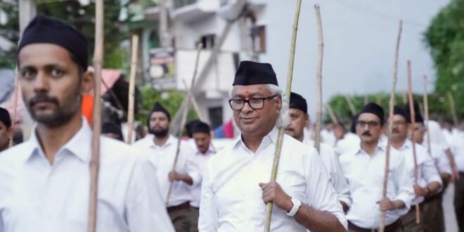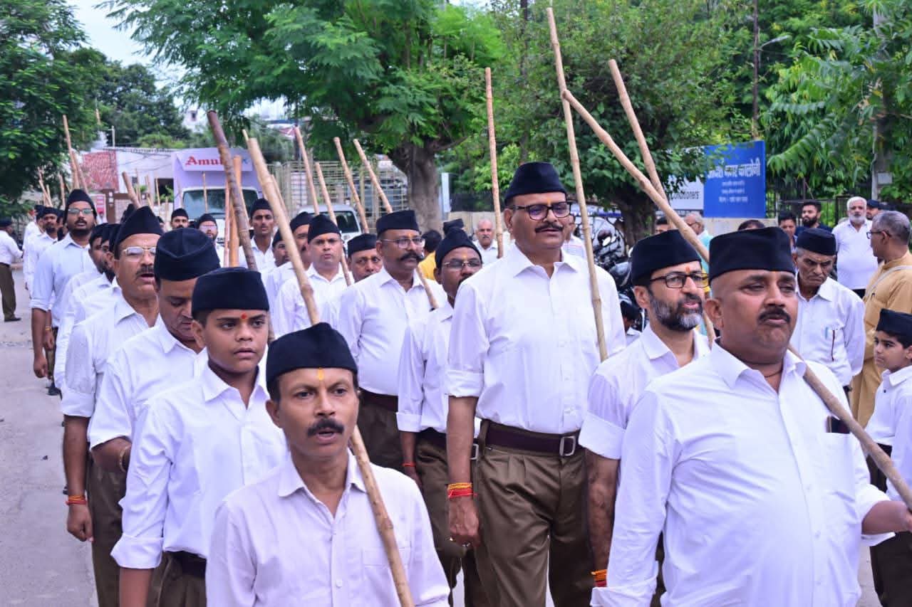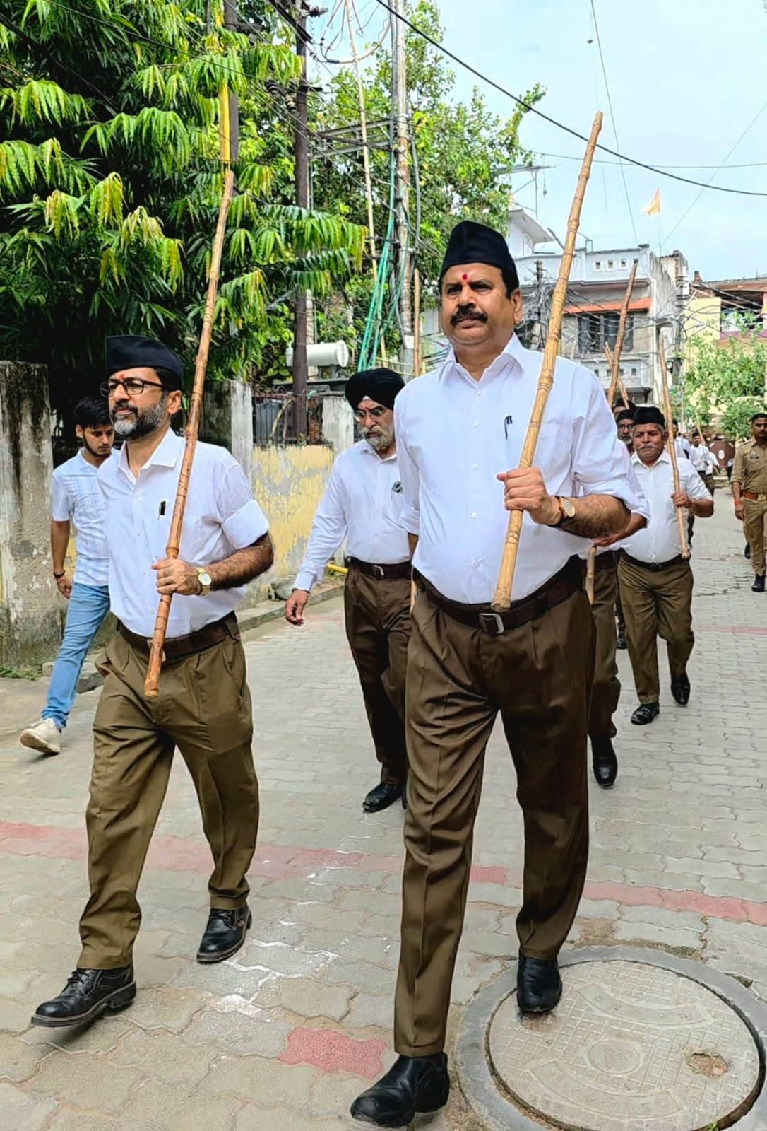 संगठन गढ़े चलो सुपंथ पर बढ़े चलो की पंक्तियों के साथ बढ़े स्वयंसेवकों के कदम