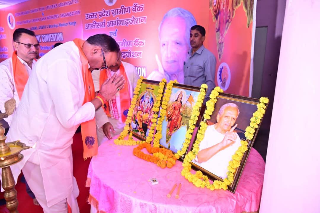 लखनऊ (टेलीस्कोप टुडे संवाददाता)। निराला नगर स्थित माधव सभागार में रविवार को उत्तर प्रदेश ग्रामीण बैंक ऑफिसर्स एवं वर्कर्स ऑर्गेनाइजेशन और भारतीय मजदूर संघ का प्रथम संयुक्त अधिवेशन आयोजित किया गया। अधिवेशन का शुभारंभ बतौर मुख्य अतिथि मौजूद उप मुख्यमंत्री ब्रजेश पाठक ने दीप प्रज्वलन कर किया।