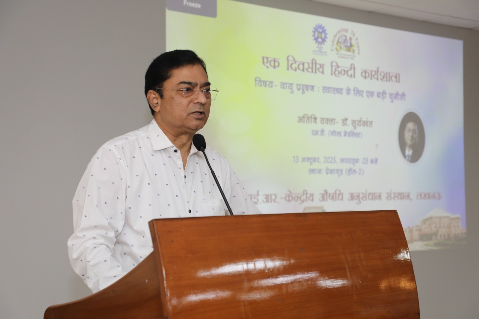 इस अवसर पर आयोजित हिन्दी कार्यशाला में डॉ. सूर्य कान्त ने हिन्दी भाषा के महत्व पर भी प्रकाश डाला। उन्होंने कहा कि बच्चों को अपनी मातृभाषा में शिक्षा देने से उनकी समझ और अभिव्यक्ति की क्षमता बढ़ती है तथा सांस्कृतिक पहचान सशक्त होती है। उन्होंने वैज्ञानिकों को समाज के लिए उपयोगी विषयों पर हिंदी भाषा में लिखने का आह्वाहन किया। डॉ सूर्य कान्त ने उत्तर प्रदेश हिन्दी संस्थान से प्रकाशित अपनी पुस्तक खर्राटे हैं खतरनाक संस्थान के पुस्तकालय के लिए भेंट की।