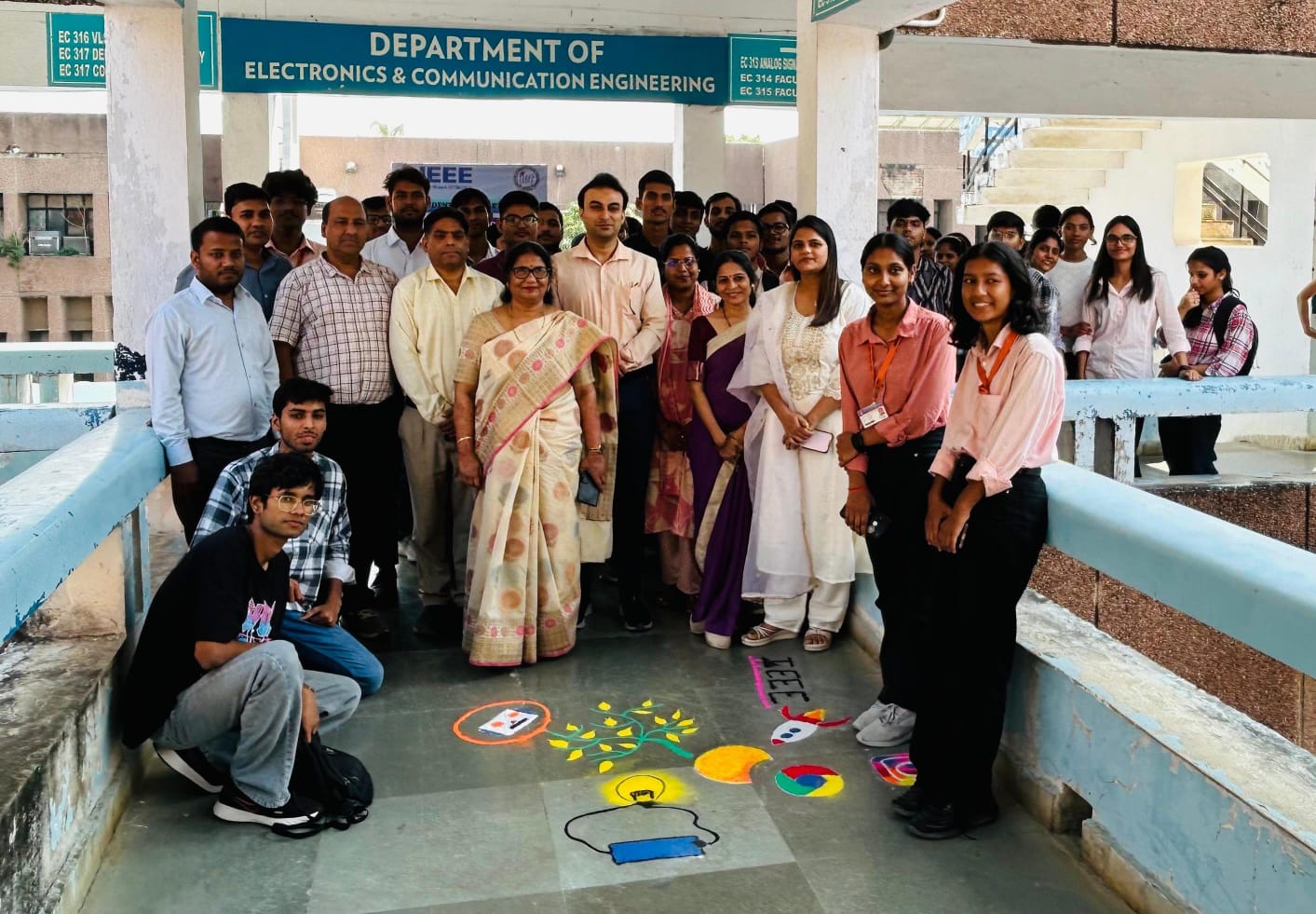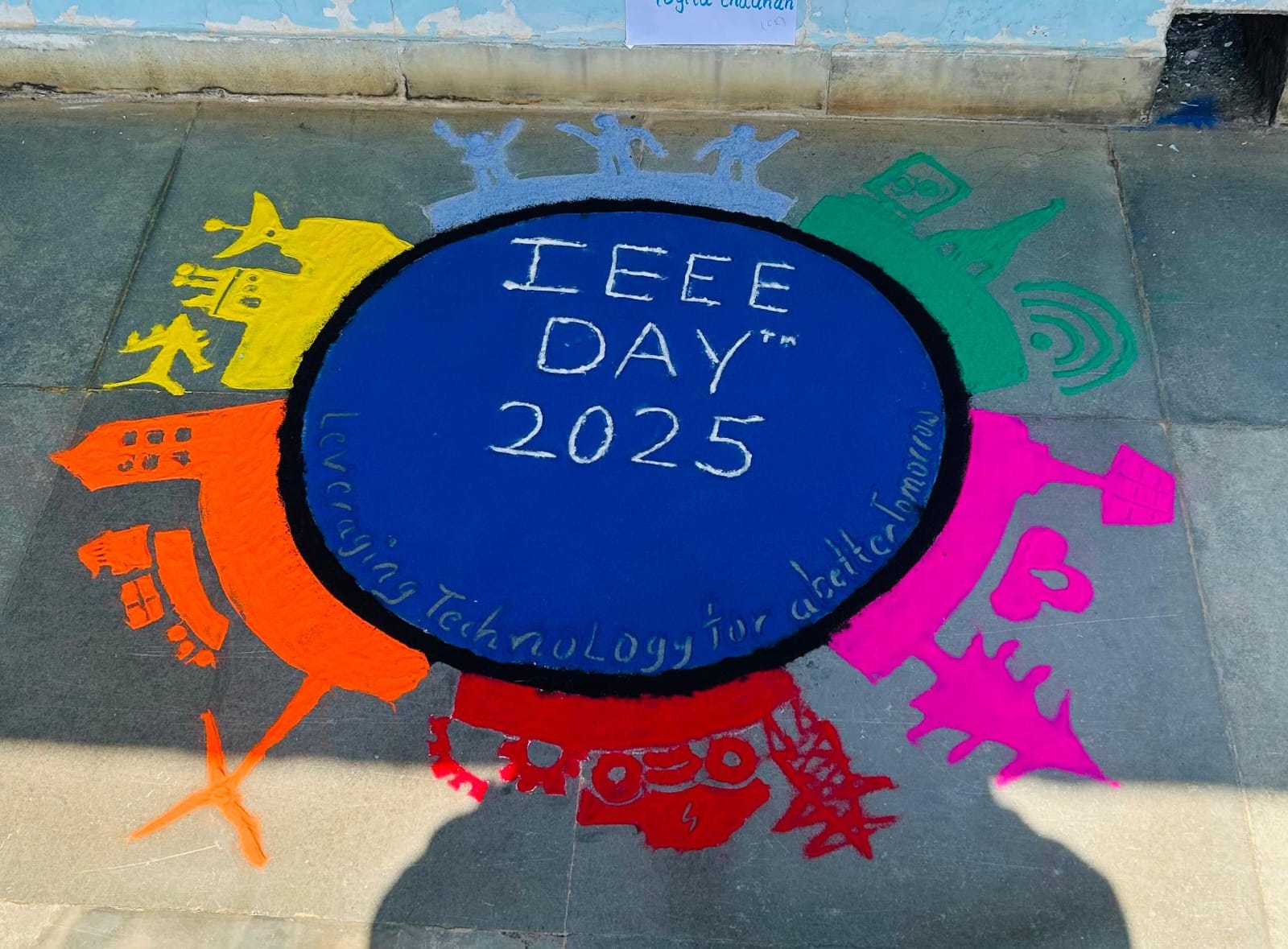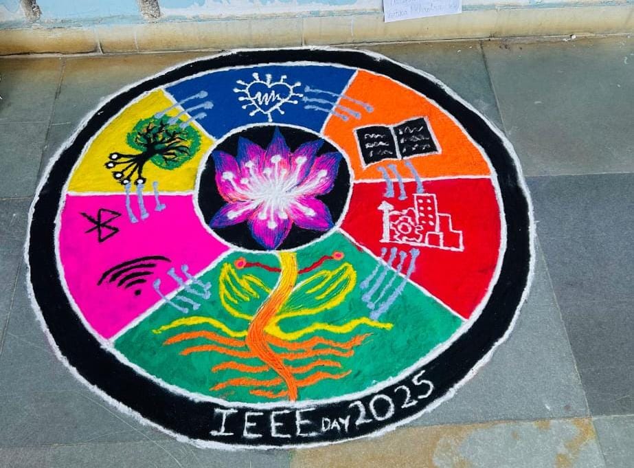 रंगोली प्रतियोगिता की थीम “IEEE Day: Leveraging Technology for a better Tomorrow” थी। जिस पर छात्रों ने नवाचार और सामाजिक भलाई के विचारों को रंगों के माध्यम से अभिव्यक्त किया, जिससे तकनीकी कल्पनाशीलता और रचनात्मकता उजागर हुई।