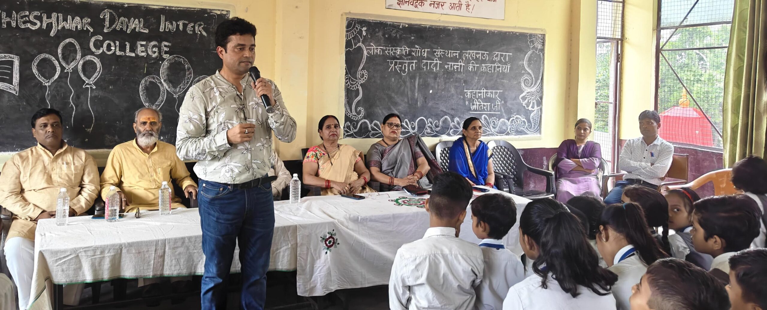 लखनऊ (टेलीस्कोप टुडे संवाददाता)। खेल-खेल में शिक्षा का संदेश देने वाली दादी-नानी की कहानी श्रृंखला में गुरुवार को बच्चों ने भूतों का राजा की कहानी सुनी। यह आयोजन अलीगंज के बेलीगारद स्थित विश्वेश्वर दयाल इंटर कॉलेज में लोक संस्कृति शोध संस्थान की मासिक श्रृंखला के 74वें कार्यक्रम के अंतर्गत हुआ। कहानी का रोचक व प्रेरक प्रस्तुतीकरण प्रसिद्ध स्टोरीमैन जीतेश श्रीवास्तव ने किया।