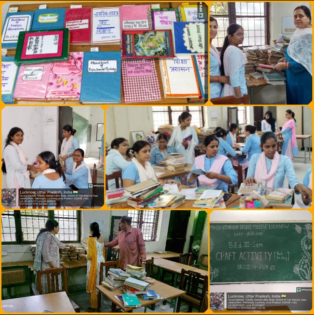लखनऊ (टेलीस्कोप टुडे संवाददाता)। महिला विद्यालय डिग्री कॉलेज के बी.एड. विभाग में शनिवार को प्राचार्य दीप्ति सिंह तथा डॉ. रश्मि श्रीवास्तव के निर्देशन में जिल्दसाजी/ बुक बाइंडिग वर्कशॉप का आयोजन किया गया। कार्यशाला में छात्राओं ने पुस्तक जिल्दसाजी प्रक्रिया को सीखा तथा विभाग में उपलब्ध पुरानी पुस्तकों और शोध पत्रिकाओं की जिल्दसाजी कर उन्हें सुंदर रूप दिया। कार्यशाला में उत्कृष्ट बाइंड की गई पुस्तकों के लिए छात्राओं को पुरस्कृत भी किया गया।
