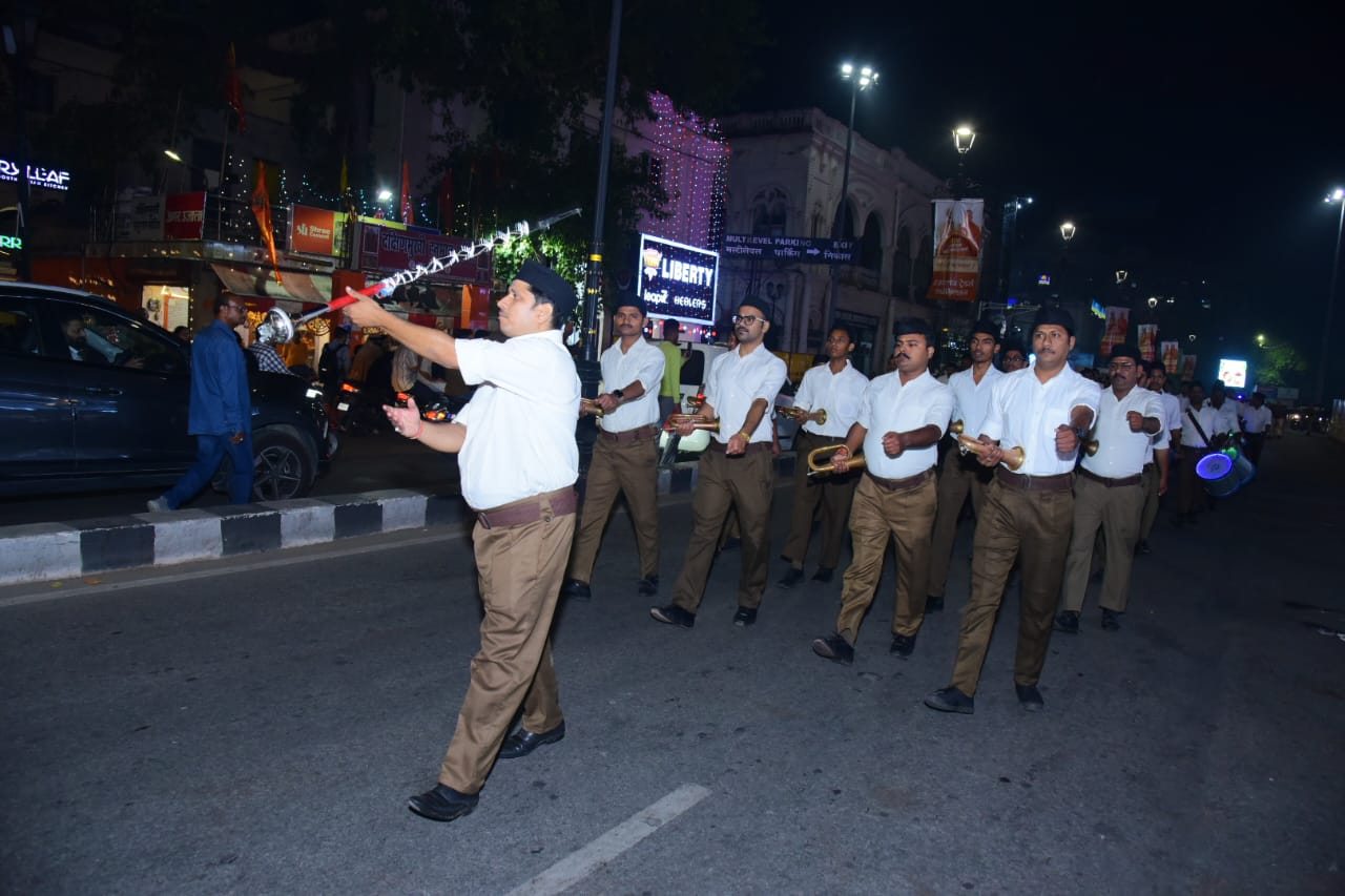 वाद्य यंत्र बजाते हुए संचलन भारतीय जनता पार्टी के प्रदेश कार्यालय होते हुए अटल चौराहा (हजरतगंज) पहुँचा। यहां से मेफियर चौराहा होते हुए संचलन गुरूद्वारा श्री गुरू सिंह सभा प​हुँचा। गुरूद्वारा के सामने स्वयंसेवकों ने शिवरंजनी व जन्मभूमि का वादन किया। इसके बाद शर्मा टी स्टाल होते हुए नगर निगम पार्क वापस पहुंचकर संचलन पूर्ण हुआ। इस संचलन में शामिल सभी स्वयंसेवक कोई न कोई वाद्य यंत्र बजाते हुए संचलन किया।