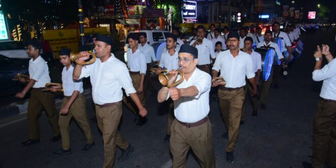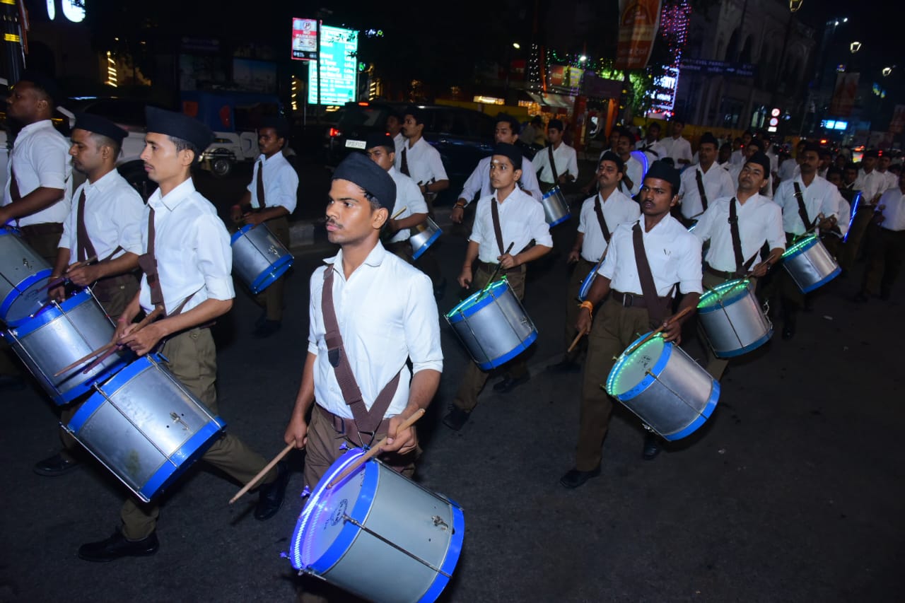 प्रकाश पर्व पर RSS ने वाद्य यंत्रों संग निकाला कौमुदी संचलन