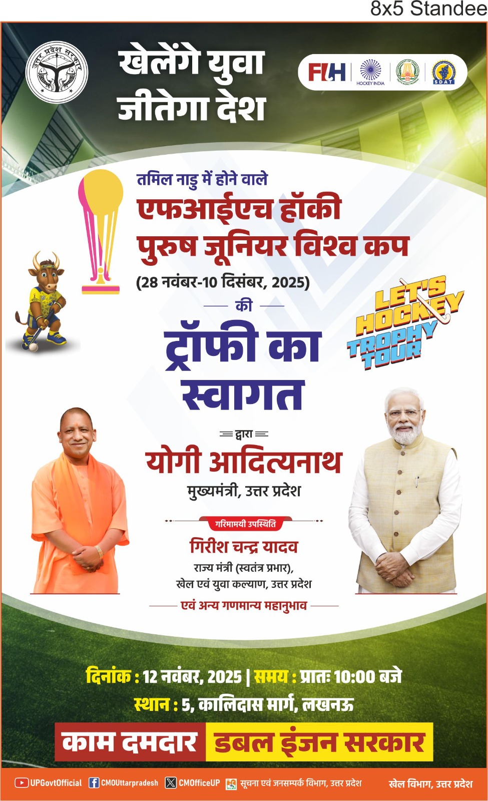लखनऊ (टेलीस्कोप टुडे संवाददाता)। उत्तर प्रदेश की राजधानी लखनऊ आगामी एफआईएच पुरुष जूनियर हॉकी विश्व कप 2025 की ट्रॉफी यात्रा के एक ऐतिहासिक आयोजन की साक्षी बनने जा रही है। 12 नवम्बर को इस प्रतिष्ठित ट्रॉफी का शहर में भव्य स्वागत किया जाएगा। इस अवसर पर उत्तर प्रदेश के मुख्यमंत्री योगी आदित्यनाथ बतौर मुख्य अतिथि उपस्थित रहेंगे। जबकि खेल एवं युवा कल्याण मंत्री गिरीश चंद्र यादव इस कार्यक्रम में विशेष अतिथि के रूप में सहभागिता करेंगे।