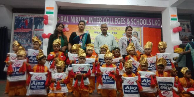 लखनऊ (टेलीस्कोप टुडे संवाददाता)। बाल निकुंज इंटर कॉलेज मोहिबुल्लापुर शाखा स्थित शिव सहाय जी सभागार में बाल दिवस एवं विद्यालय का स्थापना दिवस धूमधाम से मनाया गया। इस मौके आयोजित पर अंतर्शाखीय किड्स डांस, फैंसी ड्रेस एवं ड्रामा प्रतियोगिता में प्लेग्रुप, नर्सरी एवं केजी-1 के 450 बच्चों ने प्रतिभाग किया। देश भक्ति एवं प्रादेशिक लोक गीतों पर आधारित मनमोहक प्रस्तुति से नन्हे मुन्ने बच्चों ने सभी को मंत्रमुक्त कर दिया।