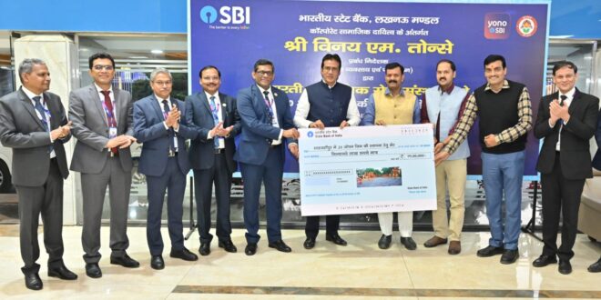 लखनऊ (टेलीस्कोप टुडे संवाददाता)। भारतीय स्टेट बैंक के प्रबंध निदेशक विनय एम. तोन्से ने लखनऊ मण्डल के अपने दौरे में मेसर्स भारती सामाजिक सेवा संस्थान (एनजीओ) को बैंक के कॉर्पोरेट सामाजिक दायित्व कार्यक्रम के अंतर्गत शाहजहांपुर जिले में 20 ओपन जिम स्थापित करने के लिए 99 लाख रुपये का चेक भेंट किया। भारतीय स्टेट बैंक की इस पहल का उद्देश्य समुदाय में स्वास्थ्य और आरोग्य को बढ़ावा देना है।