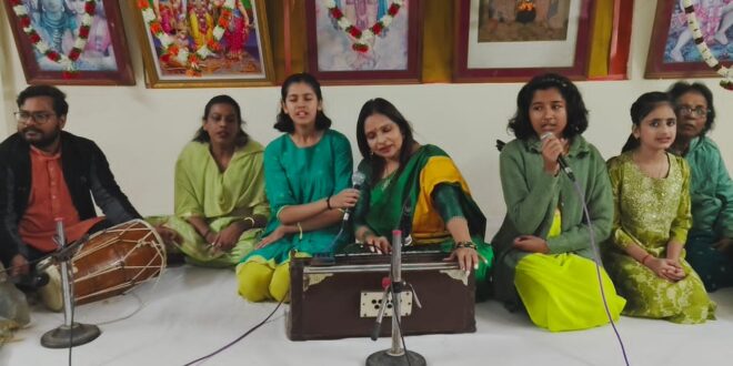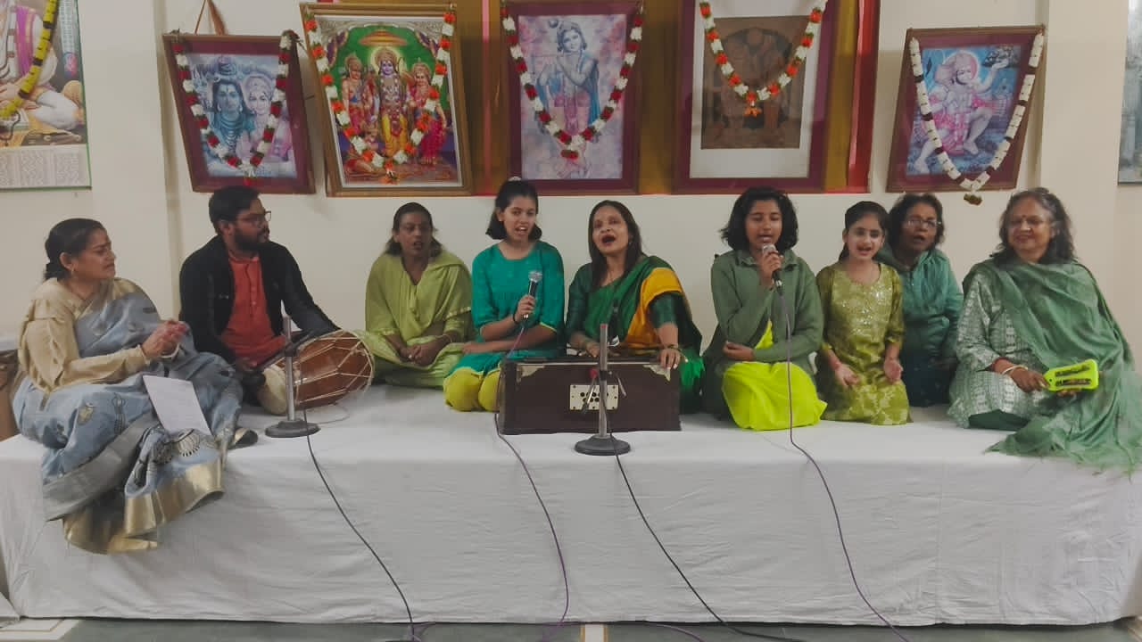 सुषमा गुप्ता ने क्या बनाऊं तरकारी बता के जाना, सरिता अग्रवाल ने आपन रसोई में बनइहो पकवान, सुषमा प्रकाश ने हमारे प्रभु कब मिलिहैं घनश्याम, चित्रा श्रीवास्तव ने राम पइयां चलो, अरुणा उपाध्याय ने राधिका श्यामसुन्दर को प्यारी, शारदा पाण्डेय ने आओ आओ मेरे बांके बिहारी, संगीता खरे ने झुक जइयो तनी रघुवीर, वीना सक्सेना सिया जी बनी दुल्हन तथा पद्मा गिडवानी ने जटाओं में गंगा गले मुण्डमाला, देवेश्वरी पंवार ने गढ़वाली भजन सुनाया।