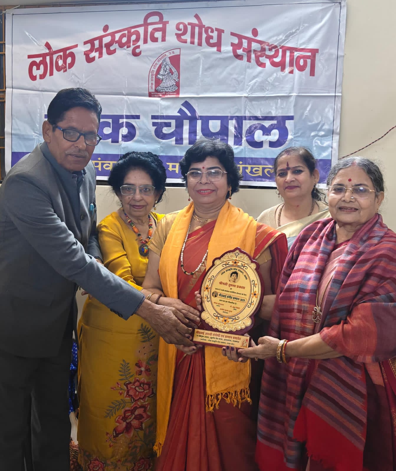 चौपाल में वर्ष 2025 के मीराबाई सम्मान से सुषमा प्रकाश को समलंकृत किया गया। विदेश प्रवास के चलते गत दिनों वे समारोह में सम्मिलित नहीं हो पाई थीं। उन्हें प्रतीक चिन्ह, अंगवस्त्रम् एवं मोतियों की माला भेंट की गई।