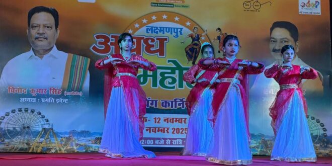 लखनऊ (टेलीस्कोप टुडे संवाददाता)। लक्ष्मणपुर अवध महोत्सव 2025 में रविवार को सांस्कृतिक मंच से कवि सम्मेलन, मुशायरा, कव्वाली, नृत्य, गायन की प्रस्तुतियां कलाकारों द्वारा दी गई। आंचल समाजोत्थान सेवा समिति द्वारा आरती शुक्ला के नेतृत्व में गणेश वंदना, रघुवर झूम रहे जैसे गीतों पर इलाक्षी, अर्जित अवया सक्सेना और सिद्धि ने अपनी प्रस्तुतियों से सबका मन मोह लिया।