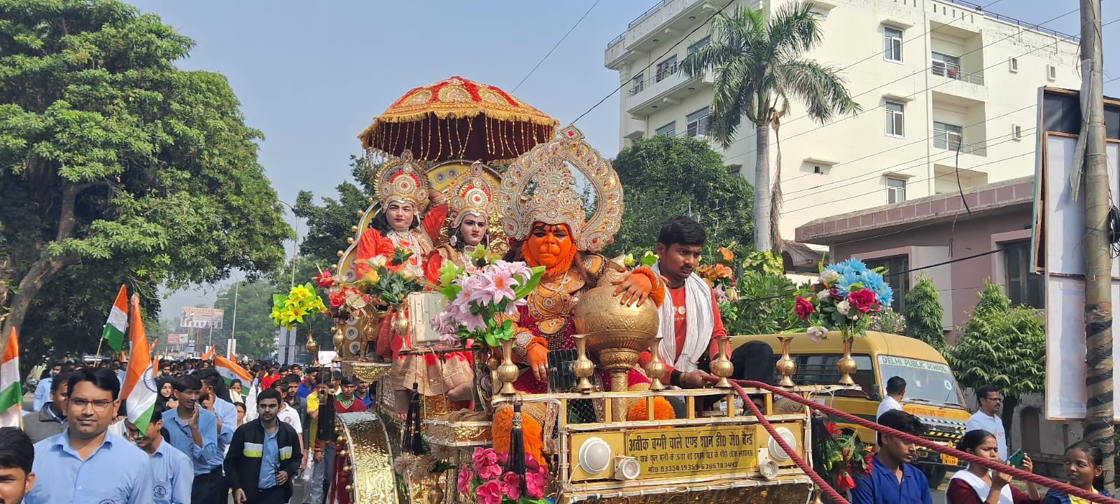 मार्च का सबसे बड़ा आकर्षण वह भव्य झांकी रही, जिसमें प्रभु श्रीराम, माता सीता, भ्राता लक्ष्मण और पवनपुत्र हनुमान विराजमान थे। रथ पर सवार यह झांकी जैसे ही आगे बढ़ती, श्रद्धा और भक्ति का माहौल स्वतः बन जाता। पूरे मार्ग पर “जय श्री राम” और “जय हनुमान” जैसे जयकारों की गूंज ने यात्रा को आध्यात्मिक और सांस्कृतिक गरिमा के साथ जोड़ दिया। रामभक्ति और राष्ट्रभक्ति का यह संगम यात्रा को और भी अद्वितीय बना रहा था।