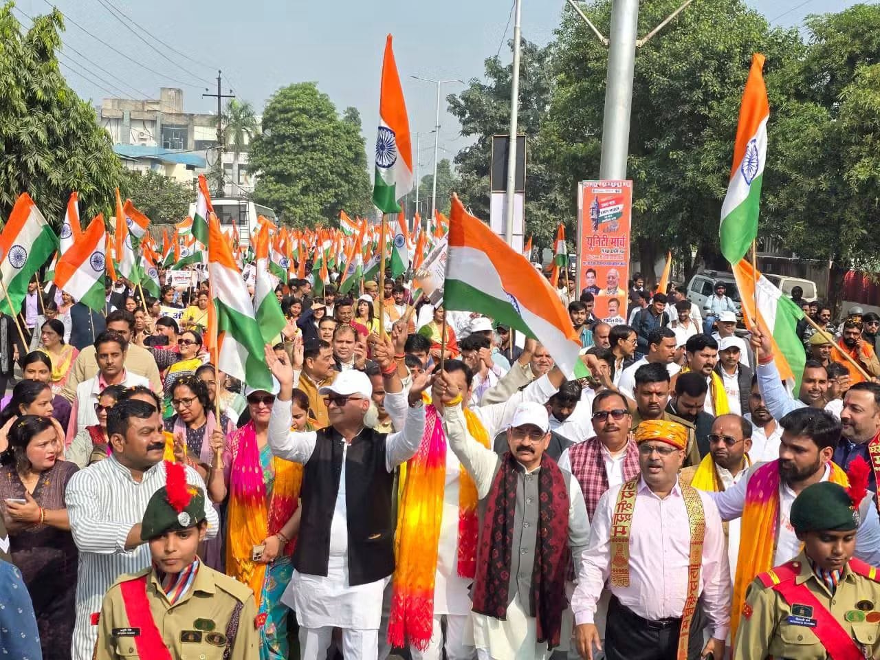 राष्ट्रभक्ति गीतों की धुन पर आगे बढ़ रहे बच्चों और युवाओं के कदम लोगों का ध्यान अपनी ओर खींच रहे थे। छात्रों में देशभक्ति का ऐसा जज्बा देखने को मिला मानो पूरा शहर “भारत माता की जय” और “वंदे मातरम्” के उद्घोष से एक स्वर में गूंज उठा हो। हर मोड़, हर रास्ते पर तिरंगे की लहर और जनता का उत्साह इस बात का प्रमाण था कि लखनऊ का मन आज राष्ट्रीय एकता के रंग में रंगा हुआ है।