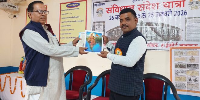 गोंडा (टेलीस्कोप टुडे संवाददाता)। भारतीय संविधान के 76 वें वर्षगांठ पर हाईकोर्ट अधिवक्ता सुरेन्द्र मिश्र सूर्य के नेतृत्व में संविधान संदेश जन जागरण यात्रा आरम्भ की गई। जिसके तहत सरस्वती विद्या मंदिर में विचार गोष्ठी का आयोजन किया गया।
