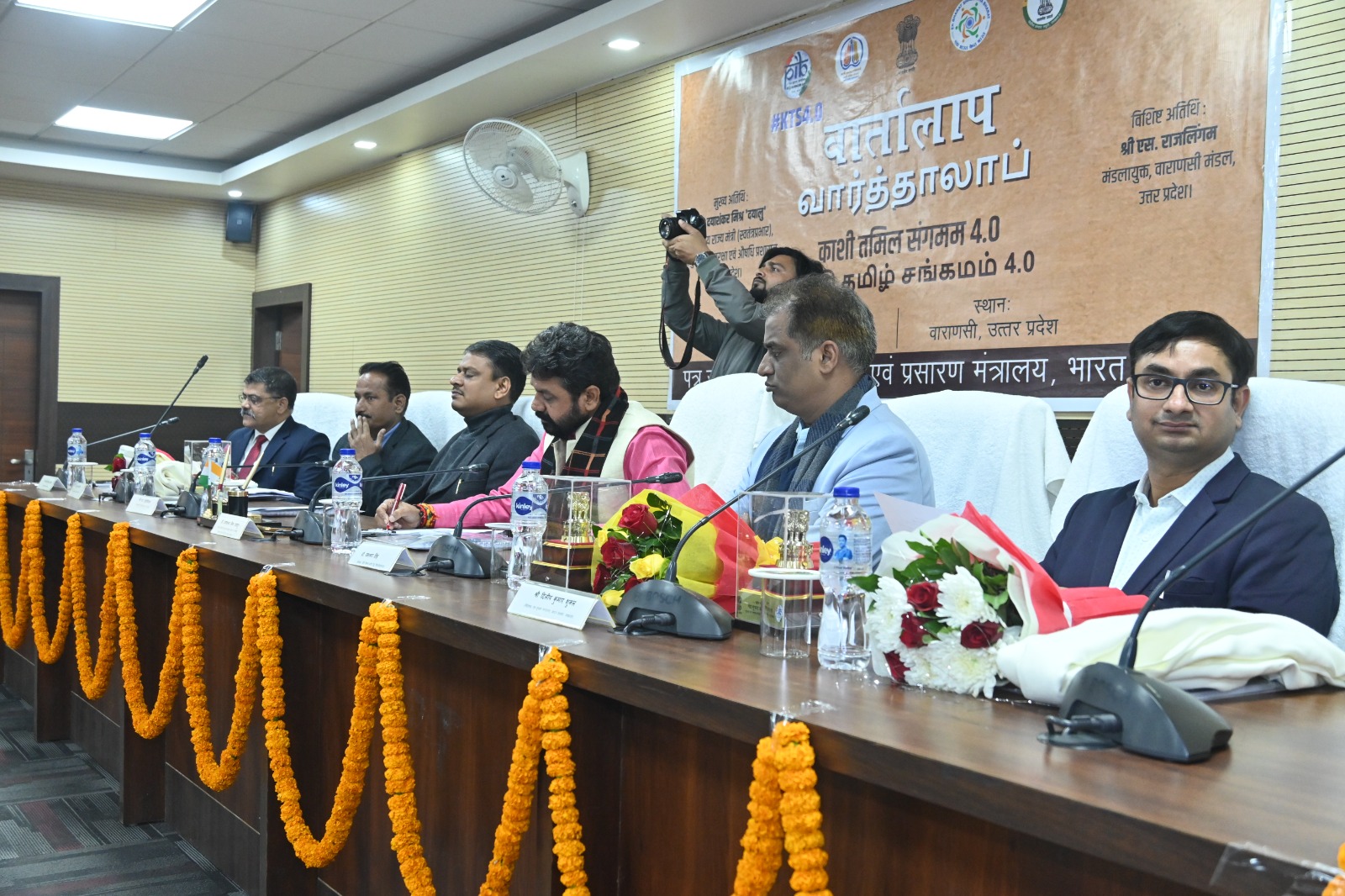 वाराणसी (टेलीस्कोप टुडे संवाददाता)। पत्र सूचना कार्यालय द्वारा ‘काशी तमिल संगमम 4.0’ के आयोजन के क्रम में ‘वार्तालाप कार्यक्रम’ (मीडिया कार्यशाला) का आयोजन किया गया। इस कार्यशाला में लगभग 100 पत्रकारों द्वारा भागीदारी की गयी। मीडिया कार्यशाला को मुख्य अतिथि उत्तर प्रदेश सरकार के राज्यमंत्री (स्वतंत्र प्रभार) दयाशंकर मिश्र ‘दयालु’ तथा विशिष्ट अतिथि वाराणसी के मंडलायुक्त एस. राजलिंगम ने संबोधित किया।
