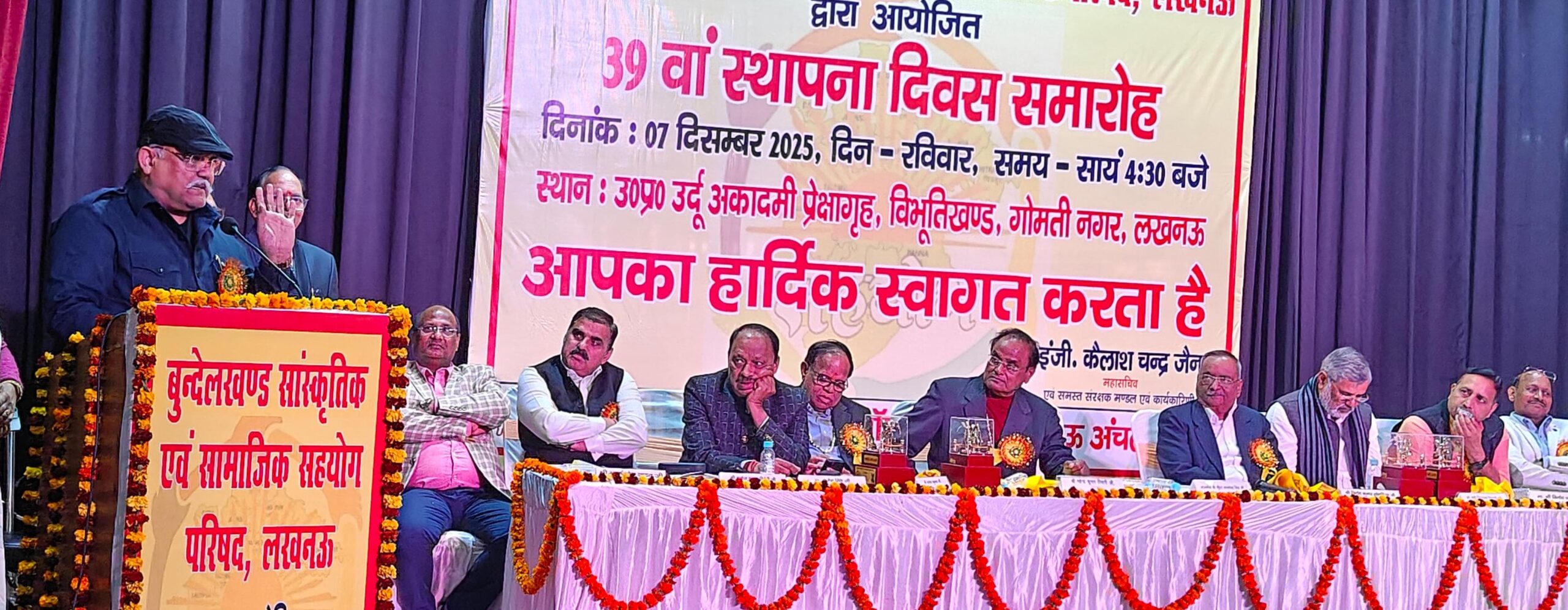 लखनऊ (टेलीस्कोप टुडे संवाददाता)। बुंदेलखंड सांस्कृतिक एवं सामाजिक सहयोग परिषद के तत्वावधान में परिषद का 39वाँ स्थापना दिवस समारोह रविवार को उत्तर प्रदेश उर्दू अकादमी प्रेक्षागृह में आयोजित किया गया। कार्यक्रम के मुख्य अतिथि उत्तर प्रदेश विधान परिषद के सभापति कुंवर मानवेंद्र सिंह रहे। समारोह की अध्यक्षता संगठन के अध्यक्ष महेंद्र कुमार तिवारी ने की।