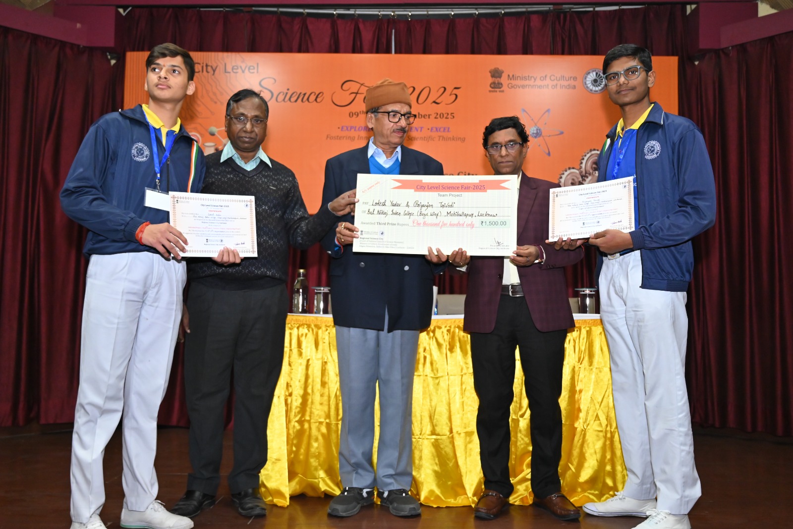 टीम प्रोजेक्ट श्रेणी में, प्रथम पुरस्कार सीएमएस राजाजीपुरम-I के सिद्धार्थ गौतम और सुहैब उल्लाह खान को उनके आयोनिक थ्रस्टरी प्रोजेक्ट के लिए दिया गया। जबकि द्वितीय पुरस्कार ए.एस. विधान और मोहम्मद शावेज को एडवांस सेफ्टी ड्राइविंग हेलमेट के लिए और तृतीय पुरस्कार बाल निकुंज इंटर कॉलेज के लोकेश यादव और प्रियांजन त्रिवेदी को कचरे से बिजली उत्पादन के लिए दिया गया। इसके साथ ही मोहम्मद अनस खान और अक्षत सिंह को बायो-इंस्पायर्ड फॉग हार्वेस्टर के लिए प्रोत्साहन पुरस्कार भी दिया गया।