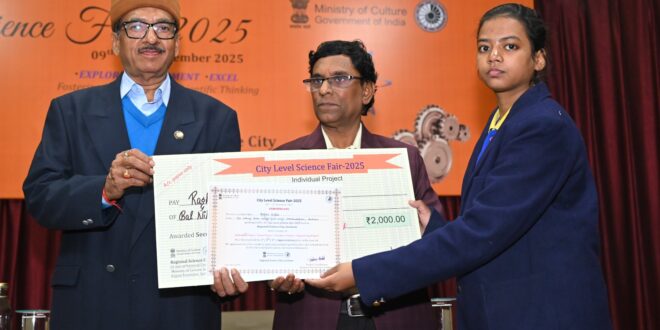 लखनऊ (टेलीस्कोप टुडे संवाददाता)। अलीगंज स्थित आंचलिक विज्ञान नगरी में आयोजित दो दिवसीय नगर स्तरीय विज्ञान मेले का बुधवार को समापन हो गया। जिसमें 25 व्यक्तिगत परियोजनाओं, 26 टीम परियोजनाओं, 6 इंजीनियरिंग परियोजनाओं और 5 शिक्षक परियोजनाओं सहित 60 से अधिक परियोजनाएं प्रस्तुत की गईं।