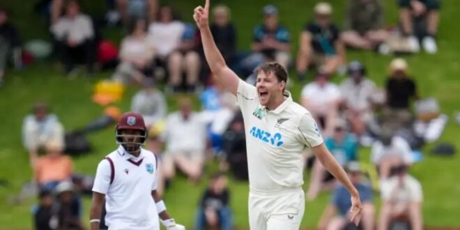 वेलिंगटन : वेलिंगटन टेस्ट के तीसरे दिन न्यूजीलैंड ने वेस्टइंडीज को 9 विकेट से हराकर 2025-27 विश्व टेस्ट चैम्पियनशिप (डब्ल्यूटीसी) चक्र में अपनी पहली जीत दर्ज की। तेज़ गेंदबाज़ जैकब डफी ने दूसरी पारी में घातक गेंदबाज़ी करते हुए 5 विकेट चटकाए, जिसके चलते वेस्टइंडीज मात्र 128 रन पर ढेर हो गई। न्यूजीलैंड को मिले 56 रनों के लक्ष्य को टीम ने चाय से पहले ही हासिल कर सीरीज में 1-0 की बढ़त ले ली। वेस्टइंडीज इस चक्र में सात में से छह मैच हार चुकी है और अब भी जीत से दूर है।तीसरे दिन शुक्रवार की सुबह ब्रैंडन किंग (22) के रन-आउट से शुरू हुए विकेट पतन ने जल्द ही वेस्टइंडीज टीम को बैकफुट पर ला दिया। शाई होप उसी ओवर में आसान कैच दे बैठे, जबकि कप्तान रोस्टन चेज़ भी डफी की उछाल लेती गेंद का शिकार बने। कवेम हॉज (35) और जस्टिन ग्रीव्स (25) ने थोड़ी कोशिश जरूर की, लेकिन 31वें ओवर में हॉज का पुल शॉट सबस्टिट्यूट विल यंग ने बेहतरीन कैच में बदल दिया।88/6 के बाद जीत की उम्मीद लगभग खत्म हो चुकी थी। डफी और रे ने मिलकर बाकी काम निपटा दिया। डफी ने 5-38 के आंकड़े के साथ पारी खत्म की।आसान रहा लक्ष्य का पीछालक्ष्य का पीछा करते हुए टॉम लैथम जल्दी आउट हुए, लेकिन डेवोन कॉनवे (28*) और केन विलियमसन (16*) ने टीम को 10 ओवर में ही जीत दिला दी।पहली पारी में न्यूजीलैंड ने 278/9 पर पारी घोषित की थी। वेस्टइंडीज पहली पारी में 205 रन ही बना सकी थी।मैच के बाद न्यूजीलैंड कप्तान टॉम लैथम ने कहा, “दूसरी पारी में गेंदबाज़ी बेहतर होती गई। डफी की परफॉर्मेंस शानदार रही।”वेस्टइंडीज कप्तान रोस्टन चेज़ बोले, “पिच बल्लेबाजी के लिए आसान थी, लेकिन हम फायदा नहीं उठा सके।”दोनों टीमों के बीच तीसरा टेस्ट 18 दिसंबर से माउंट माउंगानुई में शुरू होगा।संक्षिप्त स्कोरन्यूजीलैंड 278/9 घोषित (हे 61, कॉनवे 60, फिलिप 3-70)और 57/1 (कॉनवे 28, विलियमसन 16)**वेस्टइंडीज 205 (होप 47, टिकनर 4-32)और 128 (हॉज 35, डफी 5-38, रे 3-45)नतीजा: न्यूजीलैंड 9 विकेट से जीता