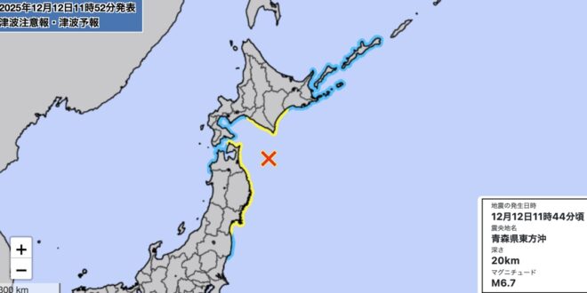 टोक्यो : जापान में आज रिक्टर स्केल पर दर्ज किए गए 6.7 तीव्रता के भूकंप के बाद देश के उत्तर-पूर्व में सुनामी की चेतावनी जारी की गई। भूकंप जापान के मुख्य द्वीप होन्शू के उत्तर में आओमोरी प्रांत के पूर्वी तट से 20 किलोमीटर की गहराई पर स्थानीय समय के अनुसार शुक्रवार सुबह 11:44 बजे आया।जापान टुडे अखबार की रिपोर्ट में जापान मौसम विज्ञान एजेंसी के हवाले से यह जानकारी दी गई। एजेंसी ने कहा कि होक्काइडो, आओमोरी, इवाते और मियागी प्रांतों के प्रशांत तट पर एक मीटर तक की सुनामी आ सकती है। इससे पहले इस सप्ताह की शुरुआत में सोमवार को 7.5 तीव्रता का भूकंप आ चुका है। होन्शू द्वीप के सबसे उत्तरी प्रांत आओमोरी के तट पर आए इस भूकंप में कम से कम 34 लोग घायल हो गए थे।जापान मौसम विज्ञान एजेंसी के अधिकारियों ने कहा कि सोमवार के भूकंप के बाद टोक्यो के ठीक पूर्व में चिबा से लेकर होक्काइडो तक जापान के उत्तर-पूर्वी तट पर 8 तीव्रता के भूकंप और संभावित सुनामी आने का खतरा भी थोड़ा बढ़ गया है। एजेंसी ने इलाके की 182 नगर पालिकाओं के निवासियों से आने वाले हफ्ते में सावधान रहने का आग्रह किया है। ताजा भूकंप तटीय इलाके में उस क्षेत्र के आसपास आए हैं जहां 2011 में 9.0 तीव्रता के भूकंप और सुनामी से लगभग 20,000 लोग मारे गए थे और फुकुशिमा दाइची न्यूक्लियर पावर प्लांट तबाह हो गया था।
