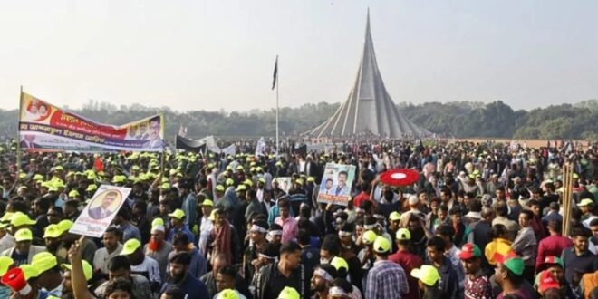 ढाका : बांग्लादेश ने आज 1971 के मुक्ति संग्राम के पराक्रमी योद्धाओं को किया नमन किया। बांग्लादेश की अंतरिम सरकार के मुख्य सलाहकार प्रोफेसर मोहम्मद यूनुस ने 55वें विजय दिवस के मौके पर ढाका के बाहरी इलाके सावर में राष्ट्रीय स्मारक पर पुष्पांजलि अर्पित करके मुक्ति संग्राम के शहीदों को श्रद्धांजलि दी।इस साल 16 दिसंबर को ही भारतीय सेना के पराक्रम की वजह पाकिस्तान का विभाजन हुआ और दुनिया के मानचित्र में नए देश बांग्लादेश का अभ्युदय हुआ था। प्रो. यूनुस सुबह करीब 6ः56 बजे राष्ट्रीय स्मारक की वेदी पर पुष्पांजलि अर्पित की। दो मिनट का मौन भी रखा। इस मौके पर बांग्लादेश सेना, नौसेना और वायु सेना के जवानों की टुकड़ी ने राजकीय सलामी दी। इस मौके पर मुख्य न्यायाधीश, अंतरिम सरकार के सलाहकार, तीनों सेनाओं के प्रमुख, स्वतंत्रता सेनानी, राजनयिक और अधिकारी मौजूद रहे।विजय दिवस पर सभी क्षेत्रों के लोग शहीदों को श्रद्धांजलि देने के लिए सावर स्मारक पर उमड़े। राष्ट्रीय स्मारक को प्रो. यूनुस के जाने के बाद जनता के लिए खोल दिया गया था। विजय दिवस के उपलक्ष्य में राष्ट्रीय स्मारक के आसपास चार-स्तरीय सुरक्षा व्यवस्था की गई। इलाके को 13 सेक्टर में बांटकर करीब 23 किलोमीटर लंबे हाइवे पर सुरक्षा सुनिश्चित की गई।