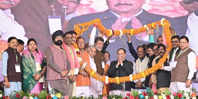 कोरबा/जांजगीर-चांपा : मुख्यमंत्री विष्णुदेव साय के नेतृत्व में छत्तीसगढ़ सरकार के सफल दो वर्ष पूर्ण होने के उपलक्ष्य में जांजगीर-चांपा जिले के खोखराभाठा पुलिस लाइन मैदान में सोमवार को आयोजित जनादेश परब में केंद्रीय स्वास्थ्य एवं परिवार कल्याण मंत्री जगत प्रकाश नड्डा ने मंच से प्रदेश की उपलब्धियों, जनकल्याण और भविष्य की दिशा पर स्पष्ट संदेश दिया। वंदे मातरम और राज्यगीत के साथ आरंभ हुए कार्यक्रम में जनविश्वास, गौरव और निर्माण के संकल्प को दोहराया गया।केंद्रीय मंत्री नड्डा ने कहा, “जो कहा था, वह किया और जो नहीं कहा था, वह भी करके दिखाया।”उन्होंने दो वर्षों के रिपोर्ट कार्ड को रेखांकित करते हुए बताया कि सरकार ने किसानों, महिलाओं, युवाओं और श्रमिकों के हित में संवेदनशील और परिणामकारी निर्णय लिए हैं, जिनका असर जमीनी स्तर पर दिख रहा है।उन्होंने कहा कि सरकार बनने के पहले महीने में किसानों को 3700 करोड़ रुपये से अधिक का भुगतान और बीते दो वर्षों में 1.25 लाख करोड़ रुपये का प्रत्यक्ष अंतरण अन्नदाताओं के सम्मान का प्रमाण है। भूमिहीन कृषि मजदूरों के लिए 5 लाख से अधिक हितग्राहियों को 10-10 हजार रुपये की सहायता दी गई, जिससे उनकी सामाजिक-आर्थिक सुरक्षा मजबूत हुई।केंद्रीय मंत्री नड्डा ने कहा कि युवाओं के लिए पारदर्शी भर्ती तंत्र, 32 हजार पदों पर भर्ती की प्रक्रिया, लोक सेवा आयोग में पारदर्शिता, नालंदा लाइब्रेरी की स्थापना और आईटीआई के आधुनिकीकरण जैसे कदमों को उन्होंने “भविष्य-निर्माण की नींव” बताया। महिलाओं के स्वावलंबन के लिए महतारी वंदन योजना और महतारी सदन, पीएम जनमन के तहत 70 लाख परिवारों को लाभ तथा धरती आबा जनजाति ग्राम उत्कर्ष योजना के माध्यम से आदिवासी समाज के सशक्तिकरण को उन्होंने सरकार की संवेदनशीलता का उदाहरण बताया।केंद्रीय मंत्री ने कहा कि “छत्तीसगढ़ का रेलवे बजट 22 गुना बढ़ा है, 32 अमृत स्टेशन वर्ल्ड-क्लास मानकों पर विकसित हो रहे हैं और आयुष्मान भारत, उज्ज्वला, जल जीवन मिशन, पीएम-किसान जैसी योजनाओं का व्यापक लाभ आमजन तक पहुंचा है।”मुख्यमंत्री विष्णुदेव ने प्रदेशवासियों को छत्तीसगढ़ की वर्तमान सरकार के दो वर्ष पूर्ण होने पर बधाई देते हुए कहा कि सरकार आम जनता के विश्वास पर खरा उतरने के लिए निरंतर कार्य कर रही है। प्रधानमंत्री आवास, महतारी वंदन, भूमिहीन कृषि मजदूर कल्याण योजना, चरण पादुका सहित अनेक योजनाओं से विकास को गति मिली है। मुख्यमंत्री साय ने स्पष्ट किया कि सुरक्षा, पुनर्वास और विकास- तीनों मोर्चों पर समन्वित रणनीति से शांति और समृद्धि का मार्ग प्रशस्त हुआ है।वित्त मंत्री और जिले के प्रभारी मंत्री ओ.पी. चौधरी ने स्वागत उद्बोधन में कहा कि विजन डॉक्यूमेंट के माध्यम से छ