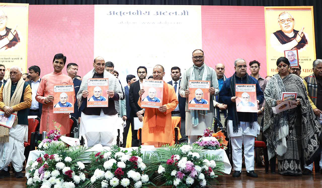 - रक्षा मंत्री राजनाथ सिंह व मुख्यमंत्री योगी आदित्यनाथ ने ‘अटल महानायक’ पुस्तक का किया विमोचन