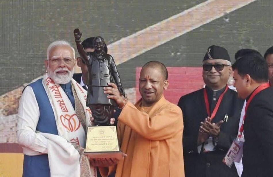 सीएम योगी ने प्रधानमंत्री नरेंद्र मोदी का स्वागत करते हुए कहा कि अंत्योदय के स्वप्न को साकार करने वाले, श्रद्धेय अटल जी के सुशासन को मूर्त रूप देने वाले आत्मनिर्भर व आधुनिक भारत के शिल्पकार, ‘एक भारत-श्रेष्ठ भारत’ के स्वप्न दृष्टा प्रधानमंत्री नरेंद्र मोदी के करकमलों से लखनऊ में राष्ट्र प्रेरणा स्थल, तीनों महापुरुषों की भव्य प्रतिमा व म्यूजियम का भव्य लोकार्पण हो रहा है।