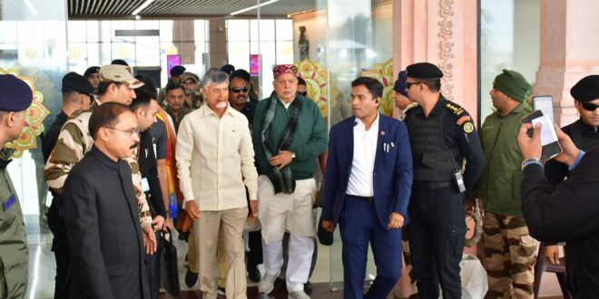 अयोध्या : आंध्र प्रदेश के मुख्यमंत्री चंद्रबाबू नायडू रविवार को श्री राम जन्मभूमि मंदिर में भगवान रामलला के दर्शन-पूजन के लिए अयोध्या पहुंचे। महर्षि वाल्मीकि अंतरराष्ट्रीय एयरपोर्ट पर प्रदेश के कृषि मंत्री सूर्य प्रताप शाही और जिलाधिकारी निखिल टीकाराम फुंडे ने उनका स्वागत किया। यहां से वह राम मंदिर के लिए रवाना हुए।आंध्र प्रदेश के मुख्यमंत्री नायडू श्री राम जन्मभूमि मंदिर परिसर में लगभग तीन घंटे रहेंगे और मंदिर में दर्शन-पूजन के साथ मंदिर निर्माण की शैली देखेंगे। मंदिर पहुंचने पर उनका स्वागत श्रीराम जन्मभूमि तीर्थ क्षेत्र के महामंत्री चम्पत राय करेंगेI नायडू राम मंदिर के प्रतिष्ठा द्वादशी के मौके पर आयोजित धार्मिक अनुष्ठान में भी सहभागिता करेंगे और महर्षि वाल्मीकि एयरपोर्ट से 2:50 बजे विजयवाड़ा एयरपोर्ट (आंध्र प्रदेश) के लिए उड़ान भरेंगे।——————–