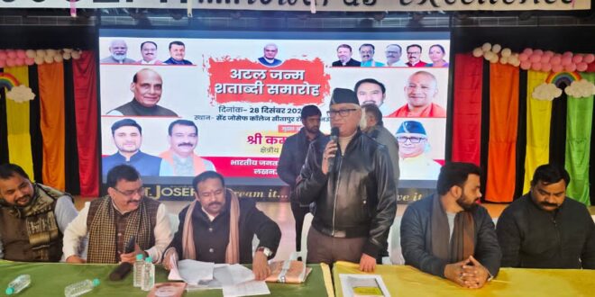 लखनऊ (टेलीस्कोप टुडे संवाददाता)। भारत रत्न पूर्व प्रधानमंत्री अटल बिहारी वाजपेयी की जन्मशताब्दी के अवसर पर भारतीय जनता पार्टी द्वारा रविवार को लखनऊ उत्तर विधानसभा क्षेत्र में सीतापुर रोड स्थित सेंट जोसेफ कॉलेज में संगोष्ठी एवं संगठनात्मक बैठक आयोजित की गई। भाजपा लखनऊ महानगर अध्यक्ष आनंद द्विवेदी की अध्यक्षता में अटल जी के व्यक्तित्व, कृतित्व और राष्ट्रनिर्माण में उनके योगदान पर विस्तृत चर्चा की गई।