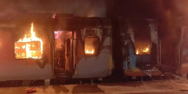 विशाखापत्तनम (आंध्र प्रदेश) : आंध्र प्रदेश के अनाकापल्ली जिले के यलमंचिली रेलवे स्टेशन पर रविवार रात लगभग एक बजे टाटानगर- एर्नाकुलम एक्सप्रेस में आग लग गई। इस दौरान दो कोच बुरी तरह जल गए। इस हादसे में एक 70 वर्षीय व्यक्ति की मौत हो गई। उनकी पहचान विजयवाड़ा के सुंदर के रूप में हुई है। लोको पायलट ने आग की लपटें देखते ही ट्रेन को स्टेशन पर रोक दिया था।दक्षिण मध्य रेलवे ने पुष्टि की है कि एर्नाकुलम (18189) एक्सप्रेस ट्रेन में आग बी 1 कोच में लगी। इसके बाद रेलवे कर्मचारियों ने बाकी कोचों को ट्रेन से अलग कर दिया। यह ट्रेन जमशेदपुर से केरल के एर्नाकुलम जा रही थी। यह हादसा विशाखापत्तनम से करीब 66 किलोमीटर दूर हुआ।अनकापल्ली के पुलिस अधीक्षक तुहिन सिन्हा ने घटनास्थल का निरीक्षण किया। मृतक के परिजनों को सूचना दे दी गई है। हादसे में बचे यात्रियों का मेडिकल परीक्षण कराया गया है और दूसरी ट्रेन का भी इंतजाम कर उन्हें एर्नाकुलम भेजा गया। सिन्हा ने बताया कि फिलहाल फोरेंसिक टीमें आग की वजह का पता लगाने में जुटी हैं। एफएसएल रिपोर्ट आने के बाद पूरी सही जानकारी मिल पाएगी।कुछ प्रत्यक्षदर्शियों ने बताया कि आग की तेज लपटों के साथ धुआं फैल जाने से वजह से राहत और बचाव कार्य मुश्किल हो गया। कोच की खिड़कियां तोड़कर यात्रियों को सुरक्षित बाहर निकाला। आग सबसे पहले बी1 कोच में लगी। यह कोट पेंट्री कार के बगल में था। फिर आग एम 2 तक फैल गई। दमकल विभाग की टीम के पहुंचने से पहले ही बी1 और एम 2 कोच पूरी तरह जल गए। यात्री पहले ही कोच से बाहर निकल चुके थे। आग लगने से करीब 2,000 यात्री स्टेशन पर फंस गए। अधिकारियों ने स्थिति का जायजा लिया है। अब स्थिति सामान्य बताई जा रही है।