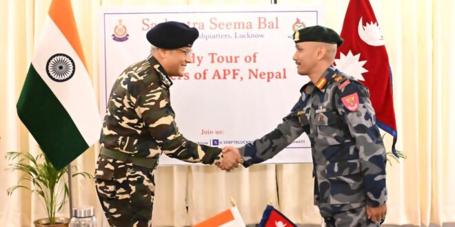 लखनऊ (टेलीस्कोप टुडे संवाददाता)। सशस्त्र प्रहरी बल, नेपाल (APF Nepal) के 19 सदस्यीय प्रशिक्षु अधिकारियों का स्वागत रत्न संजय (भा.पु.से., महानिरीक्षक, सीमांत मुख्यालय, सशस्त्र सीमा बल, लखनऊ) ने किया। 28 दिसम्बर से 31 दिसम्बर 2025 तक सीमांत, लखनऊ में प्रशिक्षण-अध्ययन भ्रमण पर आये, इस दल का नेतृत्व शम्भु सुवेदी (उप-महानिरीक्षक, APF नेपाल) द्वारा किया जा रहा है।
