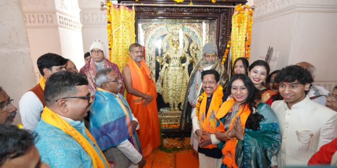 अयोध्या : कर्नाटक से अयोध्या आई सोने एवं हीरे से जड़ित प्रभु श्रीराम की प्रतिमा का स्थापना और अनावरण श्री राम जन्मभूमि प्रतिष्ठा द्वादशी के द्वितीय पाटोत्सव पर सोमवार को सम्पन्न हुआI श्रीराम जन्मभूमि तीर्थ क्षेत्र ट्रस्ट के महासचिव चंपत राय ने अनावरण किया। मूर्ति यात्री सुविधा केंद्र में स्थापित की गई है। पिछले दिनों बेंगलुरु से चित्रकार ने डाक के जरिए लगभग 30 करोड़ की भगवान श्री राम की स्वर्ण और रत्न और स्वर्ण जड़ित मूर्ति भेजा थाI भगवान श्री राम की मूर्ति तंजावुर शैली पर बनाई गई है ।तंजावुर शैली में निर्मित श्रीरामलला का 2 डी चित्र अनावृतश्रीराम जन्म भूमि तीर्थ क्षेत्र ट्रस्ट के न्यासी उडुपी पेजावर मठाधीश श्री विश्वप्रसन्न तीर्थ स्वामी महाराज,ट्रस्ट के न्यासी निर्मोही अखाडा़ के महंत दिनेंद्र दास महाराज, ट्रस्ट महासचिव चंपतराय ने तंजावुर शैली के 2डी चित्र का विधि विधान पूर्वक अनावरण किया। इस चित्र का निर्माण बंगलुरू की जयश्री फणीश ने किया है। यह चित्र यात्री सुविधा केंद्र पर तुलसीदास की मूर्ति के पास लगाया गया है।अनावरण कार्यक्रम में मंदिर की व्यवस्था से जुड़े गोपाल राव, जयश्री, डा. फणीश और उनके परिवारी सदस्य तथा मित्रगण भी उपस्थित रहे।जयश्री फणीश ने स्वप्रेरणा से विगत 9 माह के सतत परिश्रम से चित्र का निर्माण किया है। प्लाईबोर्ड के ऊपर थर्मोकोल और क्ले का उपयोग कर यह 2D चित्र बनाया गया।गोपाल ने बताया कि सोना, वज्र के पत्थर आदि धातुओं से युक्त चित्र का मूल्य भेंटकर्ता लगभग 2.5 करोड बताते हैं।श्री रामजन्मभूमि तीर्थ क्षेत्र ट्रस्ट द्वारा मंदिर परिसर में प्रतिष्ठा द्वादशी के द्वितीय पाटोत्सव का आयोजन चल रहा है, जिसमें 31 दिसंबर को रक्षामंत्री राजनाथ सिंह, मुख्यमंत्री योगी आदित्यनाथ मुख्य दिवस उपस्थित रहेंगेI