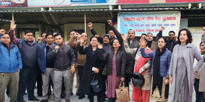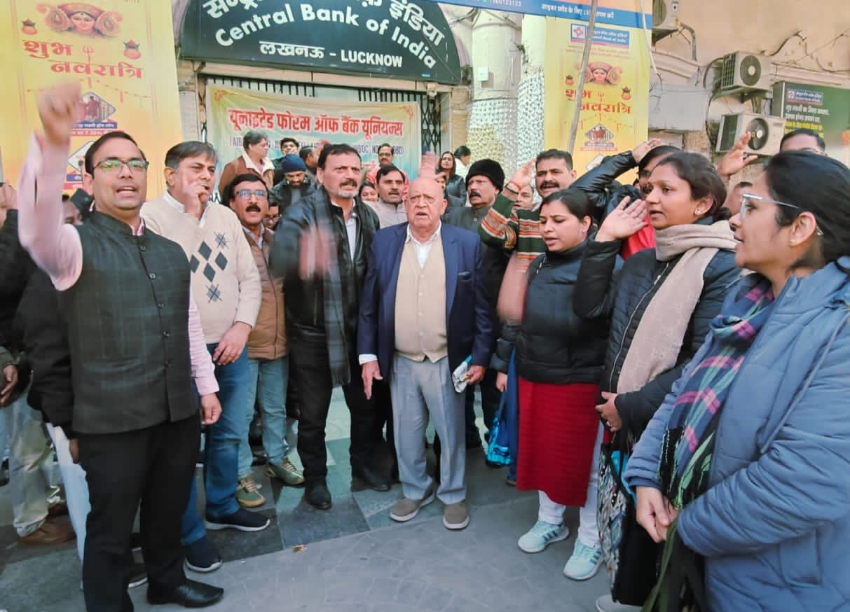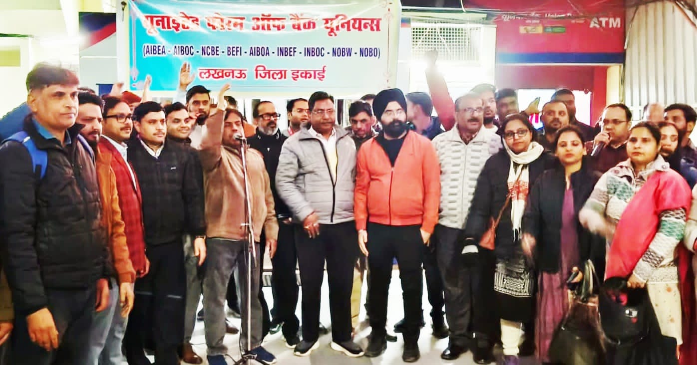 लखनऊ (टेलीस्कोप टुडे संवाददाता)। यूनाइटेड फोरम ऑफ बैंक यूनियंस के बैनर तले सार्वजनिक क्षेत्र के बैंककर्मियों ने अपना आंदोलन तेज कर दिया है। केंद्र सरकार द्वारा पांच दिवसीय बैंकिंग लागू न करने के विरोध में मंगलवार को यूनियन बैंक (कपूरथला), सेंट्रल बैंक (हजरतगंज), बैंक ऑफ़ इंडिया (चौक) तथा केनरा बैंक (गोमती नगर) में जोरदार प्रदर्शन एवं सभाएं की।
