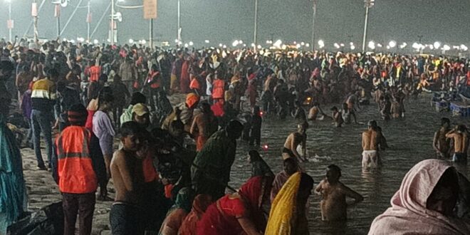 प्रयागराज : विश्व प्रसिद्ध प्रयागराज माघ मेला का पौष पूर्णिमा स्नान शुभ मुहूर्त में शनिवार भोर से हर-हर गंगे के जयघोष के साथ स्नान शुरू हो गया। श्रद्धालु पतित पावनी मां गंगा एवं यमुना और अन्त: सलीला के पावन संगम में डुबकी लगाकर पुण्य अर्जित कर रहे हैं। इस शुभ स्नान के साथ ही एक माह तक चलने वाले कल्पवास का शुभारंभ भी हो गया है। बड़ी संख्या में श्रद्धालुओं को देखते हुए सुरक्षा के कड़े इंतजाम किए गए हैं।पौष पूर्णिमा के स्नान के लिए देश के विभिन्न हिस्सों से लाखों की संख्या में श्रद्धालु प्रयागराज पहुंचे हैं। भोर होते ही संगम तट पर जयकारों का शोर गूंजने लगा था। कड़ाके की सर्दी मेंं भी श्रद्धालुओं का उत्साह कम नहीं हुआ। कल्पवासियों ने भी शिविरों में डेरा डाल दिया।माघ मेला प्रभारी ऋषिराज और पुलिस अधीक्षक माघ मेला नीरज पांडेय ने बताया कि पतित पावनी मां गंगा, यमुना और अन्त सलीला सरस्वती के पावन तट पर श्रद्धालु शुभमुहूर्त में हर-हर गंगे के साथ आस्था की डुबकी लगाकर पुण्य अर्जित कर रहे हैं।श्रद्धालु सभी घाटों पर स्नान कर रहे हैं। स्नानार्थियों की बड़ी संख्या देखी जा रही है। सुरक्षा के पुख्ता इंतजाम किए गए हैं। मेला क्षेत्र में पुलिस, केंद्रीय बल, जल सुरक्षा, अग्निशमन, आपदा प्रबंधन एवं तकनीकी इकाइयों की व्यापक एवं बहु-स्तरीय संख्यात्मक तैनाती की गई है। यहां 7 अपर पुलिस अधीक्षक एवं 14 पुलिस उपाधीक्षक पुलिस अधीक्षक, माघ मेला के अधीन कार्यरत हैं। सिविल पुलिस के अंतर्गत 29 निरीक्षक, 221 पुरुष उपनिरीक्षक, 15 महिला उपनिरीक्षक, 1593 पुरुष मुख्य आरक्षी एवं आरक्षी तथा 136 महिला मुख्य आरक्षी एवं आरक्षी की तैनाती की गई है।