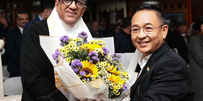 गंगटोक : न्यायमूर्ति ए. मुहम्मद मुश्ताक ने सिक्किम उच्च न्यायालय के मुख्य न्यायाधीश के तौर पर शपथ ली है। सिक्किम के राज्यपाल ओम प्रकाश माथुर ने आज राजधानी के लोक भवन में हुए शपथ ग्रहण समारोह में सिक्किम उच्च न्यायालय के नव नियुक्त मुख्य न्यायाधीश न्यायमूर्ति ए. मुहम्मद मुश्ताक को पद और गोपनीयता की शपथ दिलाई।लोक भवन की आशीर्वाद हॉल में हुए शपथ ग्रहण समारोह में मुख्यमंत्री प्रेम सिंह तमांग, सिक्किम विधानसभा के अध्यक्ष एमएन शेरपा और उपाध्यक्ष राज कुमारी थापा, सिक्किम उच्च न्यायालय की न्यायाधीश न्यायमूर्ति मीनाक्षी मदार राई, न्यायाधीश न्यायमूर्ति भास्कर राज प्रधान, मंत्रीगण, विधायकगण तथा अन्य गणमान्य लोग मौजूद रहे।इससे पहले, सिक्किम सरकार के मुख्य सचिव आर. तेलांग ने मुख्य न्यायाधीश न्यायमूर्ति मुश्ताक की नियुक्ति अधिसूचना और वारंट पढ़ा। शपथ ग्रहण समारोह के बाद राज्यपाल, मुख्यमंत्री तथा उपस्थित गणमान्य लोगों ने नव नियुक्त मुख्य न्यायाधीश को बधाई दी।केरल उच्च न्यायालय के न्यायाधीश न्यायमूर्ति ए. मुहम्मद मुश्ताक ने आज से सिक्किम उच्च न्यायालय के मुख्य न्यायाधीश का पद संभाल लिया है। वे सिक्किम उच्च न्यायालय के निवर्तमान मुख्य न्यायाधीश न्यायमूर्ति विश्वनाथ सोमद्दर की जगह लेंगे।मुख्यमंत्री प्रेम सिंह तमांग ने सिक्किम उच्च न्यायालय के नव नियुक्त मुख्य न्यायाधीश न्यायमूर्ति मुश्ताक के शपथ ग्रहण समारोह में शामिल होने पर खुशी जताई है। उन्होंने आज सोशल मीडिया फेसबुक पर एक पोस्ट में न्यायमूर्ति मुश्ताक को अपनी शुभकामनाएं दीं है।