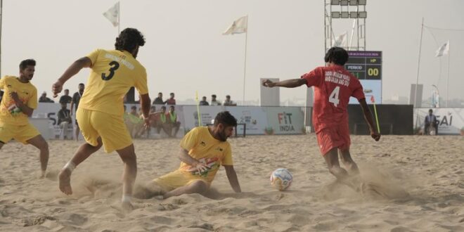 दीव : मेज़बान दादरा एवं नगर हवेली और दमन एवं दीव की टीम ने खेलो इंडिया बीच गेम्स (केआईबीजी) 2026 के बॉयज़ बीच सॉकर ग्रुप स्टेज मुकाबले में शानदार प्रदर्शन करते हुए हिमाचल प्रदेश को 15–1 से करारी शिकस्त दी। यह मुकाबला मंगलवार सुबह दीव के खूबसूरत बीच एरीना में खेला गया।करीब 30 डिग्री सेल्सियस तापमान के बीच अनुकूल मौसम में खेले गए इस मैच को देखने के लिए बड़ी संख्या में दर्शक मौजूद रहे। घरेलू टीम ने शुरुआत से ही आक्रामक खेल दिखाया और दर्शकों को गोलों की बरसात देखने को मिली।दादरा एवं नगर हवेली और दमन एवं दीव ने पहले पीरियड में ही 2–0 की बढ़त बना ली। दूसरे पीरियड में टीम का दबदबा और बढ़ गया, जहां उन्होंने आठ गोल दागे और सिर्फ एक गोल गंवाया। तीसरे पीरियड में भी टीम ने लय बरकरार रखते हुए पांच और गोल किए और मुकाबला पूरी तरह अपने नाम कर लिया। मैच में अतिरिक्त समय या पेनल्टी शूटआउट की जरूरत नहीं पड़ी।टीम के कप्तान जय नितेश हलपट्टी ने शानदार गोल स्कोरिंग प्रदर्शन करते हुए टीम का नेतृत्व किया। उन्हें केयूर मंगेला और डॉन रेमेडियोस का अच्छा सहयोग मिला, जिन्होंने आक्रमण में अहम योगदान दिया। गोलकीपर प्रयाश राजू हलपट्टी ने भी मजबूत डिफेंस के साथ भरोसेमंद प्रदर्शन किया।हिमाचल प्रदेश की ओर से एकमात्र गोल भारी दबाव के बीच आया, जबकि मेहुल कुमार के दुर्भाग्यपूर्ण आत्मघाती गोल ने उनकी मुश्किलें और बढ़ा दीं।इस बड़ी जीत के साथ दादरा एवं नगर हवेली और दमन एवं दीव ने ग्रुप स्टेज में अपनी स्थिति मजबूत कर ली है और दूसरे खेलो इंडिया बीच गेम्स में अपने इरादे साफ कर दिए हैं।अन्य मुकाबलों में महिला बीच सॉकर में अरुणाचल प्रदेश ने ग्रुप ए में महाराष्ट्र को 9–1 से हराया, जबकि ग्रुप बी में गुजरात ने हिमाचल प्रदेश पर 9–0 से एकतरफा जीत दर्ज की। वहीं, पेंचक सिलाट में प्रिंसेस एलेक्जेंडर थॉमस ने महिला तुंगगल वर्ग में स्वर्ण पदक अपने नाम किया।—————