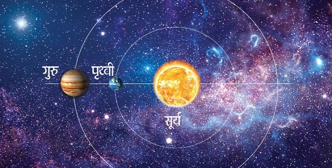 भोपाल : खगोल विज्ञान में रुचि रखने वाले लोगों के लिए आज शनिवार का दिन बेहद खास होने जा रहा है। दरअसल, आज (10 जनवरी) एक महत्वपूर्ण खगोलीय घटना होने जा रही है, जिसमें परिक्रमा करते हुए सौरमंडल का सबसे बड़ा ग्रह बृहस्पति (जुपिटर), हमारा ग्रह पृथ्वी और सूर्य तीनों एक सरल रेखा (सीध) में आ रहे हैं, जिससे बृहस्पति हमसे नजदीक होने के कारण सबसे तेज चमक के साथ अपेक्षाकृत बड़ा दिखने जा रहा है।नेशनल अवार्ड प्राप्त विज्ञान प्रसारक सारिका घारू ने इस बारे में बताया कि दोपहर 2 बजकर 4 मिनट पर जुपिटर, पृथ्वी और सूर्य एक सीध में होंगे। इस समय जुपिटर की पृथ्वी से दूरी लगभग 63 करोड़ 30 लाख 76 हजार किलोमीटर (सबसे कम) होगी। दूरी कम होने के कारण गुरुदर्शन का यह सबसे अच्छा अवसर होगा। इस कारण जुपिटर सबसे अधिक चमकीला और अपेक्षाकृत बड़ा दिखाई देगा।सारिका ने बताया कि आप बिना किसी टेलिस्कोप के जुपिटर को शाम को चमकते हुए पूर्व दिशा में देख सकते हैं, लेकिन अगर आप टेलिस्कोप से देखेंगे तो इसकी डिस्क की पटिटकाओं को तथा इसके चार गैलिलियन मून को भी देख पाएंगे। इस घटना के समय जुपिटर माइनस 2.68 के मैग्नीटयूड से चमक रहा होगा।उन्होंने बताया कि बृहस्पति जिसे गुरु भी कहते हैं, इस समय आकाश में मिथुन तारामंडल में है। यह शाम को उदित होने के बाद रातभर आकाश में रहकर मध्यरात्रि में सिर के ठीक उपर होगा तथा सुबह पश्चिम में अस्त हो जाएगा। खगोल प्रेमियों के लिए यह सुनहरा मौका है, जब पृथ्वी और बृहस्पति एक-दूसरे के आमने-सामने होंगे, इसलिए गुरुदर्शन का यह अवसर चूकिए मत।सारिका ने बताया कि बृहस्पति हमारे ग्रह पृथ्वी से लगभग 11 गुना चौड़ा है। अगर हमारी पृथ्वी को हम अंगूर के आकार की मानें तो जुपिटर का आकार बास्केट बॉल के आकार का होगा। जुपिटर की सूर्य से इतनी ज्यादा दूरी है कि सूर्यप्रकाश इस तक पहुंचने में लगभग 43 मिनट लगते हैं। जुपिटर के अब तक 95 चंद्रमा खोजे जा चुके हैं।