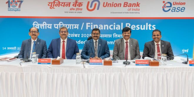 लखनऊ (टेलीस्कोप टुडे संवाददाता)। यूनियन बैंक ऑफ इंडिया ने वित्तीय मोर्चे पर शानदार प्रदर्शन करते हुए वित्त वर्ष 2025-26 की तीसरी तिमाही में 5017 करोड़ रूपये का शुद्ध लाभ अर्जित किया है। यह इस साल की पिछली तिमाही के मुकाबले 18.07 फीसदी अधिक है। यूनियन बैंक ऑफ इंडिया के निदेशक मण्डल ने 31 दिसम्बर, 2025 को समाप्त तिमाही के लिए बैंक के लेखों का बुधवार को अनुमोदन किया है।