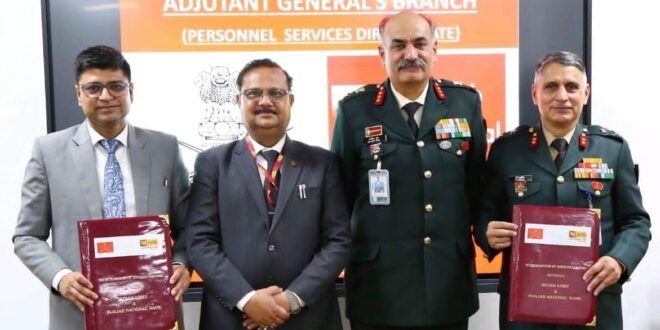 एमओयू पर पीएनबी के मुख्य महाप्रबंधक सुधीर दलाल और एडिशनल डायरेक्टर जनरल पर्सनल सर्विसेज मेजर जनरल वी.के. पुरोहित, एवीएसएम, वाईएसएम, एसएम ने हस्ताक्षर किए।।पीएनबी के मुख्य रक्षा बैंकिंग सलाहकार मेजर जनरल दिनेश सिंह बिष्ट, एसएम, वीएसएम के साथ बैंक और भारतीय सेना के अन्य वरिष्ठ अधिकारी भी हस्ताक्षर समारोह के दौरान उपस्थित थे।