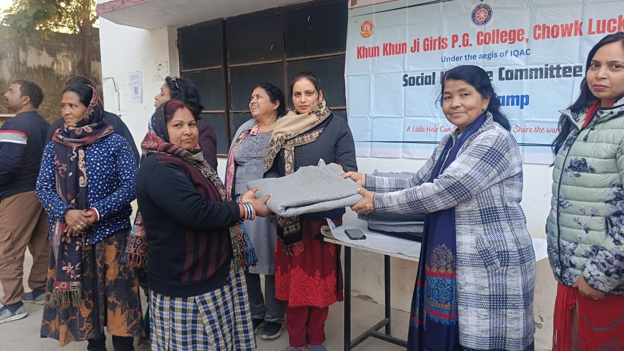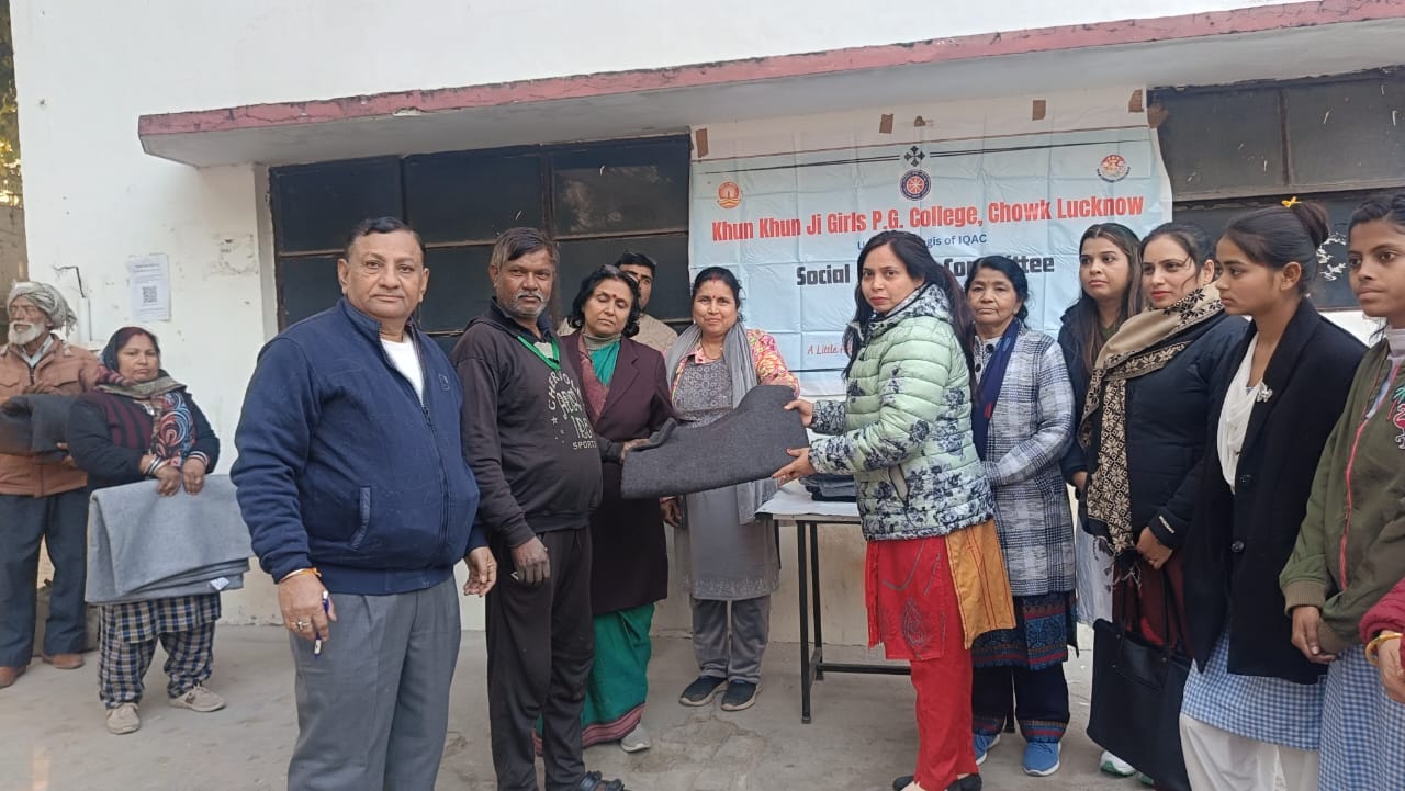 लखनऊ (टेलीस्कोप टुडे संवाददाता)। खुन-खुन जी गर्ल्स डिग्री कॉलेज परिसर में सोशल वेलफेयर कमेटी द्वारा शनिवार को कैम्प लगाकर जरूरतमंदों को ऊनी वस्त्र एवं कंबलों का वितरण किया गया। यह सेवा कार्य महाविद्यालय की शिक्षिकाओं एवं शिक्षणेतर कर्मचारियों के सहयोग से संपन्न हुआ।