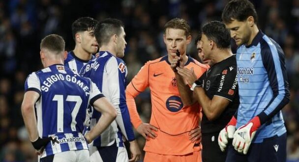 सान सेबेस्टियन : रियल सोसिएदाद ने रविवार को बारिश से भीगे सान सेबेस्टियन में खेले गए रोमांचक मुकाबले में ला लीगा 2025-26 की टेबल टॉपर बार्सिलोना को 2-1 से हराकर बड़ा उलटफेर कर दिया। इस हार के साथ ही बार्सिलोना का सभी प्रतियोगिताओं में चला आ रहा 11 मैचों का जीत का सिलसिला भी टूट गया।मैच के दौरान बार्सिलोना ने जबरदस्त दबाव बनाया, खासकर दूसरे हाफ में, लेकिन टीम की बदकिस्मती यह रही कि उसके खिलाड़ी पांच बार गोलपोस्ट या क्रॉसबार पर गेंद मार बैठे। वहीं सोसिएदाद ने अपने सीमित मौकों का शानदार तरीके से फायदा उठाया।मेजबान टीम के लिए मिकेल ओयारजाबाल ने 32वें मिनट में जोरदार वॉली के जरिए स्कोरिंग की शुरुआत की। इसके बाद 70वें मिनट में बार्सिलोना के सब्स्टीट्यूट खिलाड़ी मार्कस रैशफोर्ड ने करीबी दूरी से हेडर लगाकर बराबरी कर दी। हालांकि, खुशी ज्यादा देर नहीं टिकी और महज एक मिनट बाद गोंकालो गुएडेस ने बॉक्स के अंदर से शानदार वॉली मारकर सोसिएदाद को फिर से बढ़त दिला दी।मैच के अंतिम क्षणों में रियल सोसिएदाद को बड़ा झटका लगा, जब 88वें मिनट में कार्लोस सोलर को पेड्री पर खतरनाक स्लाइडिंग टैकल के लिए सीधा रेड कार्ड दिखाया गया, जिससे मेजबान टीम 10 खिलाड़ियों तक सिमट गई।हार के बावजूद हांसी फ्लिक के कोचिंग में खेल रही बार्सिलोना 49 अंकों के साथ अंकतालिका में शीर्ष पर बनी हुई है और दूसरे स्थान पर मौजूद रियल मैड्रिड से वह सिर्फ एक अंक आगे है। विल्लारियल और एटलेटिको मैड्रिड दोनों के 41-41 अंक हैं और वे काफी पीछे हैं।मैच की शुरुआत से ही दोनों टीमों के बीच तेज और आक्रामक खेल देखने को मिला। सातवें मिनट में फर्मिन लोपेज का गोल VAR के बाद रद्द कर दिया गया, क्योंकि बिल्ड-अप में ताकेफुसा कुबो पर फाउल पाया गया। इसके अलावा दोनों टीमों के शुरुआती गोल ऑफसाइड के चलते अमान्य करार दिए गए।दूसरे हाफ में बार्सिलोना ने बराबरी के लिए पूरी ताकत झोंकी। दानी ओल्मो ने लगातार दो शॉट पोस्ट पर मारे, जबकि 51वें मिनट में रेमिरो ने फेरान टोरेस का पक्का गोल बचाया। 65वें मिनट में रॉबर्ट लेवांडोव्स्की का हेडर भी गोलकीपर के शानदार बचाव के बाद पोस्ट से टकरा गया।आखिरी मिनटों में एक खिलाड़ी ज्यादा होने के बावजूद बार्सिलोना गोल नहीं कर सकी। इंजरी टाइम में रैशफोर्ड का कर्लिंग कॉर्नर भी नजदीकी पोस्ट से टकरा गया, जो इस हाफ में बार्सिलोना की पांचवीं बार लकड़ी से टकराने वाली कोशिश थी।इस जीत के साथ रियल सोसिएदाद ने अपने घरेलू मैदान पर शानदार प्रदर्शन करते हुए खिताबी दौड़ को और रोमांचक बना दिया, जबकि बार्सिलोना को सीजन की सबसे कड़ी चुनौतियों में से एक का सामना करना पड़ा।