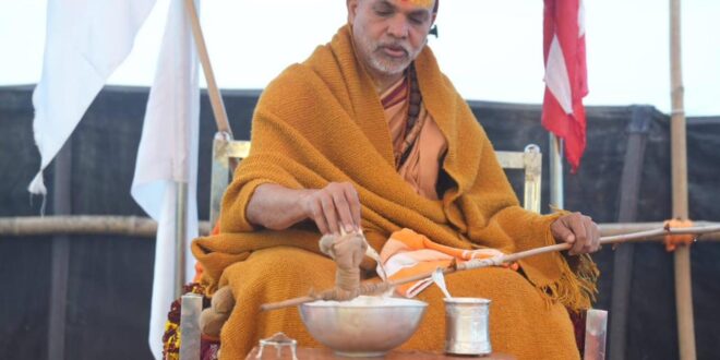 प्रयागराज (उत्तर प्रदेश) : माघ मेला पुलिस एवं प्रशासन के व्यवहार से नाराज शंकराचार्य स्वामी अविमुक्तेश्वरानंद महाराज शिविर के बाहर पालकी पर ही विराजमान रहे और सोमवार सुबह दंड, तर्पण एवं पूजा अर्चना की । उन्होंने बगैर अन्न जल के पूरी रात बिताई। यह जानकारी सोमवार सुबह शंकराचार्य के प्रवक्ता शैलेन्द्र योगी सरकार ने दी।शैलेंद्र सरकार ने बताया कि महाराज जी ने सोमवार सुबह पालकी पर ही विधि विधान से दण्ड तर्पण किया। इस दौरान उनके चाहने वाले भक्तों एवं सभी शिष्यों ने पालकी के पास संगम की रेती पर रात बिताई। महाराज जी ने शिविर के बाहर पालकी पर ही पूजा अर्चना की। उनके भक्त एवं श्रद्धालु शिविर के बाहर राम, श्रीराम, जय सियाराम का जाप करते रहे।—————