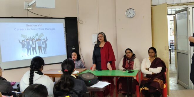NISM से पधारे मुख्य वक्ता आदर्श मिश्रा ने वित्तीय साक्षरता के विभिन्न पहलुओं, निवेश जागरूकता तथा इस क्षेत्र में उपलब्ध करियर संभावनाओं पर विस्तार से चर्चा की। उन्होंने छात्राओं द्वारा पूछे गए प्रश्नों का भी सहज एवं व्यावहारिक समाधान प्रस्तुत किया।