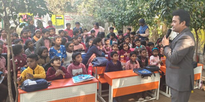 कार्यक्रम में स्टोरीमैन जीतेश श्रीवास्तव ने रोचक कथा के माध्यम से बच्चों को जीवन का महत्वपूर्ण संदेश दिया। उन्होंने कहानी सुनाई कि एक कौवा अपने काले रंग से असंतुष्ट होकर सबसे खुश पक्षी की खोज में निकलता है। हंस, तोता और मोर से होते हुए उसकी यात्रा चिड़ियाघर तक पहुँचती है।