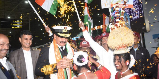 भारतीय नौसेना प्रमुख पहुंचे रांची, एयरपोर्ट पर भव्य स्वागत