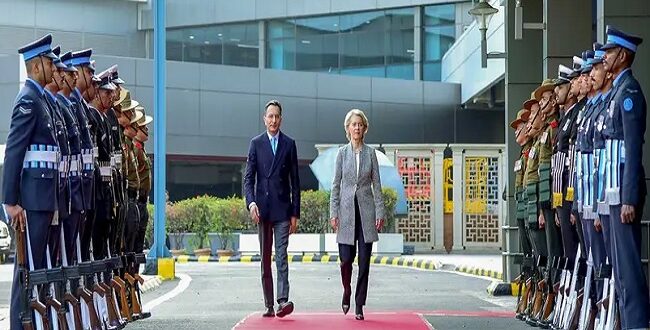 नई दिल्ली : भारत और यूरोपीय संघ (ईयू) के रिश्तों में एक और नया अध्याय जुड़ने जा रहा है। यूरोपीय आयोग की अध्यक्ष उर्सुला वॉन डेर लेयेन अपनी चार दिवसीय दौरे पर नई दिल्ली पहुंच गई हैं। दिल्ली एयरपोर्ट पर केंद्रीय वाणिज्य एवं उद्योग राज्यमंत्री जितिन प्रसाद ने ईयू चीफ का गर्मजोशी से स्वागत किया।आधिकारिक सूत्रों ने शनिवार को बताया कि यूरोपीय आयोग की अध्यक्ष उर्सुला वॉन डेर लेयेन द्विपक्षीय संबंधों के विस्तार और कई महत्वपूर्ण पहलों को अंतिम रूप देने के उद्देश्य से भारत की चार दिवसीय यात्रा पर दिल्ली पहुंच गई हैं। उनके साथ-साथ यूरोपीय परिषद के अध्यक्ष एंटोनियो कोस्टा भी रविवार को दिल्ली पहुंच रहे हैं।उर्सुला वॉन डेर लेयेन की यह यात्रा भारत के लिए दो वजहों से खास है, इसमें पहला ये दोनों यूरोपीय दिग्गज 26 जनवरी को गणतंत्र दिवस समारोह के मुख्य अतिथि होंगे और दूसरा, 27 जनवरी को होने वाली बैठक में कई बड़े व्यापारिक समझौतों पर मुहर लग सकती है। प्रधानमंत्री नरेन्द्र मोदी 27 जनवरी को कोस्टा और वॉन डेर लेयेन के साथ शिखर वार्ता करेंगे। यह बैठक अमेरिकी राष्ट्रपति डोनाल्ड ट्रंप के प्रशासन की आर्थिक और सुरक्षा नीतियों के कारण उत्पन्न वैश्विक चिंताओं के बीच आयोजित हो रही है।——————