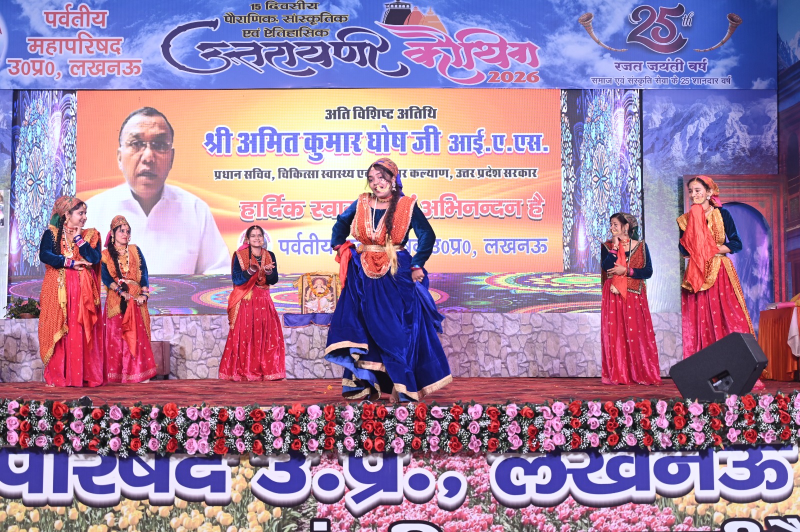 उत्तराखण्ड संस्कृति विभाग से आए रघुनाथ छोलिया दल, अल्मोड़ा के कलाकारों ने पारंपरिक वेशभूषा में छोलिया नृत्य की मनमोहक प्रस्तुतियां दीं। नर्तक रघुनाथ आर्या व भवान राम के साथ ढोल, नगाड़ा, दमाऊ, मसकबीन, प्यानू व तुरी वादकों ने पूरे कौथिग परिसर को लोकनाद से गुंजायमान कर दिया। कलाकार घूम-घूमकर नृत्य करते हुए दर्शकों को भी थिरकने पर विवश करते नजर आए।