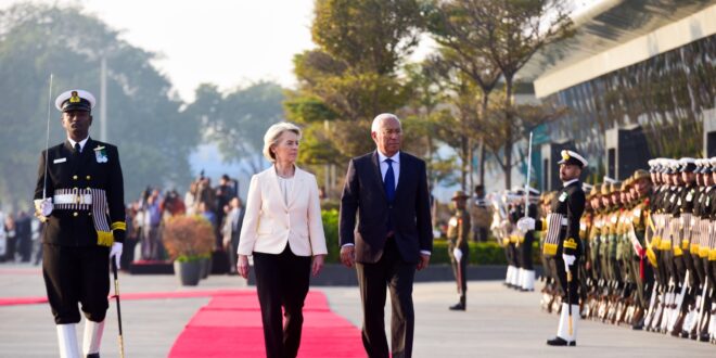 नई दिल्ली : यूरोपीय परिषद के अध्यक्ष एंतोनियो लुइस सैंटोस दा कोस्टा रविवार को गणतंत्र दिवस से एक दिन पूर्व भारत पहुंच गए। उन्हें और यूरोपीय आयोग की अध्यक्ष उर्सुला वॉन डेर लेयेन को हवाई अड्डे पर गार्ड ऑफ ऑनर दिया गया। दोनों यूरोपीय नेता 77वें गणतंत्र दिवस समारोह के मुख्य अतिथि होंगे।अपने आगमन पर अध्यक्ष एंतोनियो कोस्टा ने ‘एक्स’ पर कहा कि भारत के 77वें गणतंत्र दिवस की पूर्व संध्या पर 16वें यूरोप-भारत शिखर सम्मेलन के लिए नई दिल्ली आकर वे सम्मानित महसूस कर रहे हैं। व्यापार और सुरक्षा से लेकर स्वच्छ ऊर्जा अपनाने और मज़बूत जन संबंधों तक दोनों पक्ष एक मज़बूत और बढ़ती ईयू-भारत साझेदारी का जश्न मना रहे हैं।विदेश मंत्रालय के प्रवक्ता रणधीर जायसवाल ने बताया कि राजकीय दौरे पर नई दिल्ली पहुंचने पर मेहमान नेता का हवाई अड्डे पर मंत्री जितिन प्रसाद ने स्वागत किया। एंतोनियो कोस्टा और उर्सुला फॉन डेर लेयेन भारत के 77वें गणतंत्र दिवस समारोह में मुख्य अतिथि के रूप में शामिल हो रहे हैं। यह उच्चस्तरीय यात्रा भारत और यूरोपीय संघ के बीच रणनीतिक साझेदारी को और अधिक मजबूत करने तथा आपसी विश्वास और सहयोग को नई ऊंचाई देने में बेहद महत्वपूर्ण है।नई दिल्ली में 16वां भारत-यूरोपीय संघ शिखर सम्मेलन 27 जनवरी मंगलवार को आयोजित किया जाएगा, जिसकी मेजबानी प्रधानमंत्री नरेंद्र मोदी करेंगे। यूरोपीय संघ की ओर से यूरोपीय परिषद के अध्यक्ष एंतोनियो कोस्टा और यूरोपीय आयोग की अध्यक्ष उर्सुला फॉन डेर लेयेन शिखर सम्मेलन में भाग लेंगी। इससे एक दिन पहले दोनों नेता भारत के 77वें गणतंत्र दिवस समारोह में मुख्य अतिथि के रूप में भी शामिल होंगे।शिखर सम्मेलन के दौरान भारत-ईयू रणनीतिक साझेदारी को और मजबूत करने पर जोर दिया जाएगा। व्यापार, सुरक्षा एवं रक्षा, स्वच्छ ऊर्जा अपनाने, तकनीक-नवाचार और जन-स्तरीय संपर्क जैसे प्रमुख क्षेत्रों में सहयोग बढ़ाने पर चर्चा होगी। हाल के वर्षों में भारत-ईयू संबंधों में आई सकारात्मक गति के बीच यह सम्मेलन महत्वपूर्ण माना जा रहा है। बैठक में एक संयुक्त व्यापक रणनीतिक एजेंडा अपनाए जाने की संभावना है, जिसका उद्देश्य समृद्धि, सतत विकास, सुरक्षा, कनेक्टिविटी और वैश्विक मुद्दों पर सहयोग को नई दिशा देना है।—————