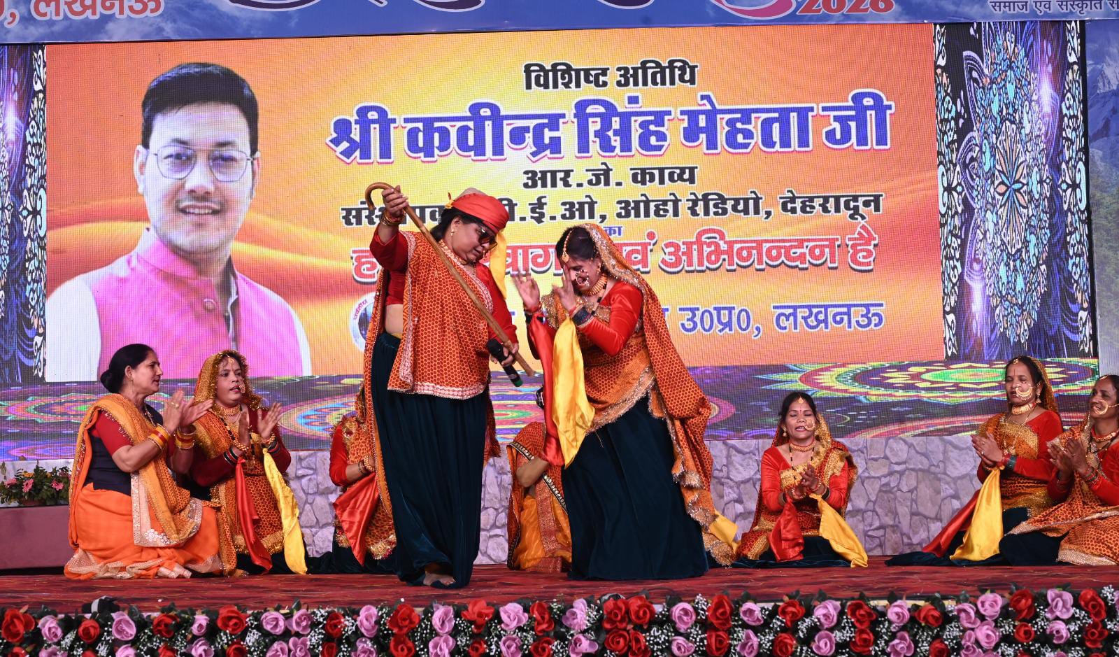 कार्यक्रम के दौरान कलाकार डॉ. अजय ढौंडियाल एवं दीवान कनवाल ने उत्तराखण्ड की प्रकृति और जन-संवेदनाओं के कवि शेरदा अनपढ़ के लोकप्रिय गीत “द्वी दिना ड्यार शेरूवा यो दुनि में” और “हम पहाड़ा का पंक्षी…” को युगल स्वर में प्रस्तुत कर श्रोताओं में उत्साह भर दिया। वहीं लखनऊ के लोकगायक आनंद कपकोटी ने “पंछी हुना उड़ी ऊना मैं तेरी मुलुक…” और “माही पाणि जी ज्यू तेरो मेरो हो…” जैसे गीतों से समां बांध दिया।